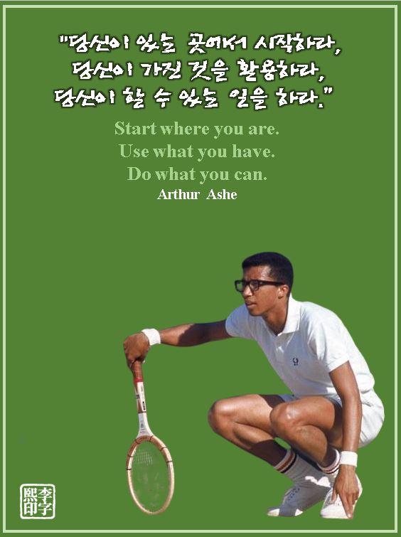 짧은 세 마디A Powerful Short 3 Lines대단한 일을 내려면 마음이 달라야 한다. 누구나 처한 상황은 다르다. 환경과 상황을 핑계로, 아니면 가진 자원과 배경이 없다는 것을 구실로 주저하거나 피하는 경우가 비일비재하다. 언제, 어느 처지에서라도 헤맬 수 있는 일들은 많다. 오늘이 생애의 가장 젊은 날이다. 마지막날인 것처럼 최선을 다하는 사람이 위대한 일을 성취한다. 설혹 잘 안되어도 오늘 희망과 욕망을 접지 말아야 한다. 어김없이 내일이 온다.아서 애시(Arthur Ashe, 1943년~1993년)는 유명 테니스 선수이자 인권운동가였다. 단식 3번, 복식 2번 그랜드 슬램 타이틀을 획득했다. 데이비스 컵 팀에 선발된 최초의 흑인 선수였고 윔블던, US 오픈, 호주 오픈에서 모두 단식 우승..