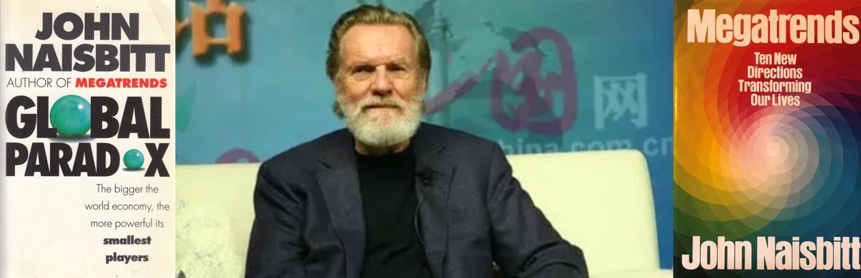 미래로 향하는 거대한 물결Mega Trends Shaping Future마케팅에서 일시적이거나 변덕스러운 열풍을 Fad라고 한다. 트렌드(Trend)란 개개의 단편적인 현상이 어떠하든, 전체로서의 대세가 어떤 방향을 가리킬 때에 쓰이는 말로 원래는 경제분석에 쓰이던 말이었는데 이제는 보편화된 용어다. 메가트랜드’란 한 마디로 거대 변화의 물결을 뜻한다. 예로 냉전 질서의 붕괴, 사회주의 경제체제 몰락, 경이적인 기술혁신, 블록 경제권 부상, 환경문제에 대한 관심 고조 등이다. 존 네이스비츠(John Naisbitts, 1929~2021)는 존슨 대통령 특별보좌관, 모스크바대학 초청교수, ‘트랜스 리포트’지 발행인, 세계 최대 리서치기관 '네이비스트' 그룹 회장, 하버드대학 초청 교수를 역임했다. 인문과학..