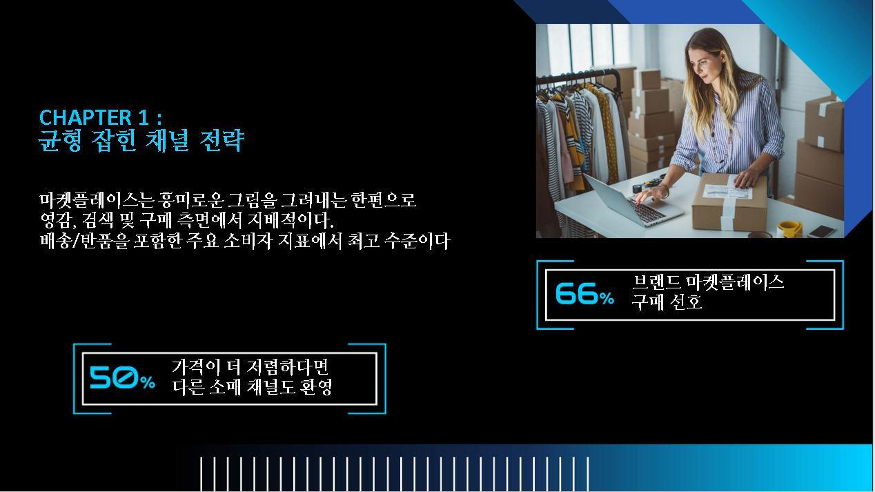 미래 쇼핑객 맞기 10The Future Shopper마켓플레이스온라인 마켓플레이스는 구매자와 판매자를 연결하여 상품이나 서비스에 대한 거래를 수행할 수 있는 플랫폼이다. 성공 핵심은 여러 채널의 효율적 운영 능력이다. 그래서 마켓플레이스는 중요한 부분이다. D2C 같은 다른 채널은 어떨까? 소비자가 마켓플레이스에 집착하지 않도록 하려면? 다른 소매 채널을 선택하게 하는 요인은? 핵심 동인은 가격이다. 가격, 편리한 배송이다. 그리고 실제 매장 보유도 바란다. 브랜드/소매업체 자체 사이트를 통해 여러 브랜드를 홍보하고 판매하는 브랜드 마켓플레이스는 어떨까? 소비자가 새로운 종류의 마켓플레이스에 만족할까? 답은 확실히 'YES'다.고객 전환에 도움이 되는 콘텐츠 중 가장 중요한 것은 평점과 리뷰다. 마켓플..
