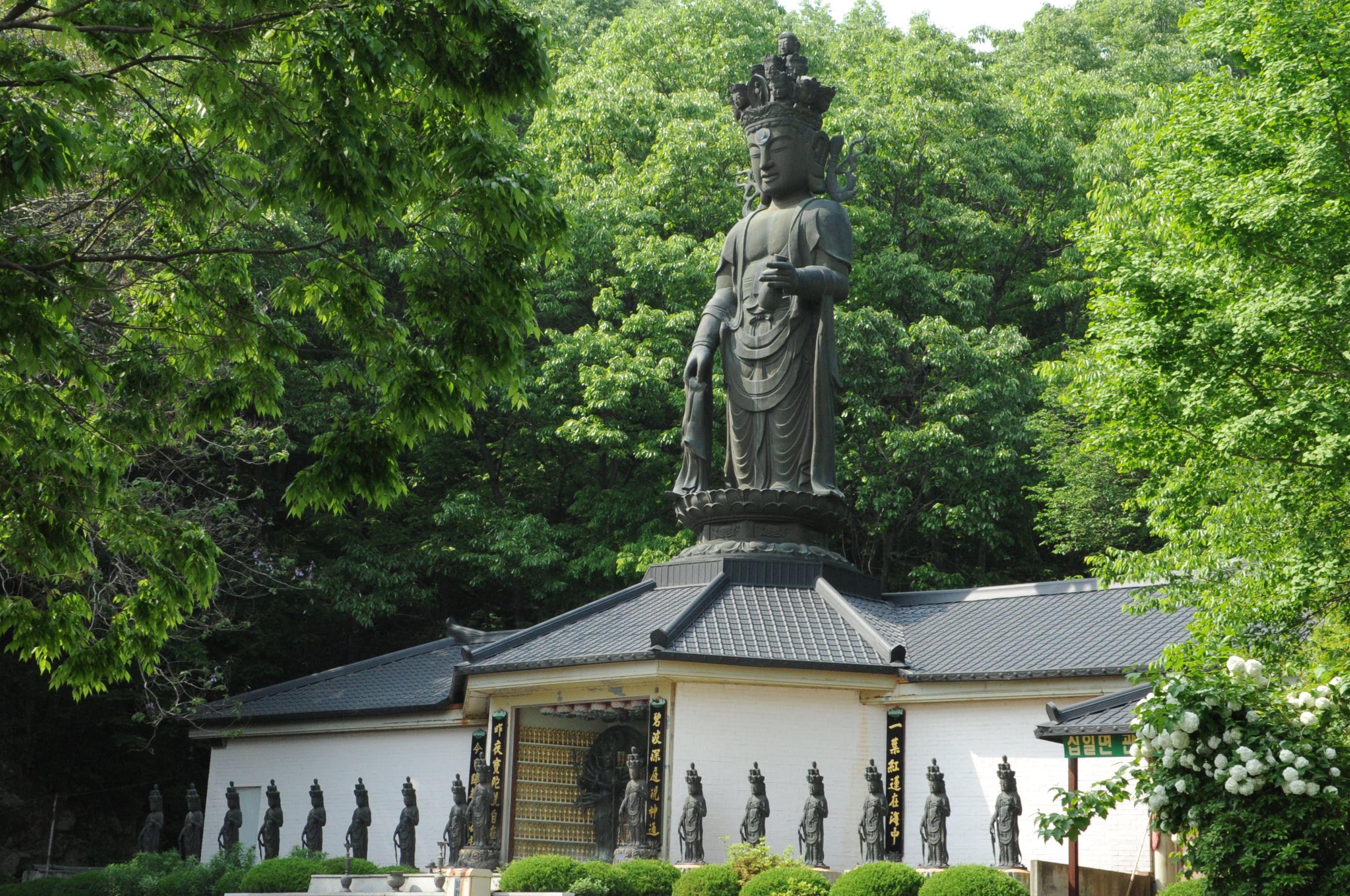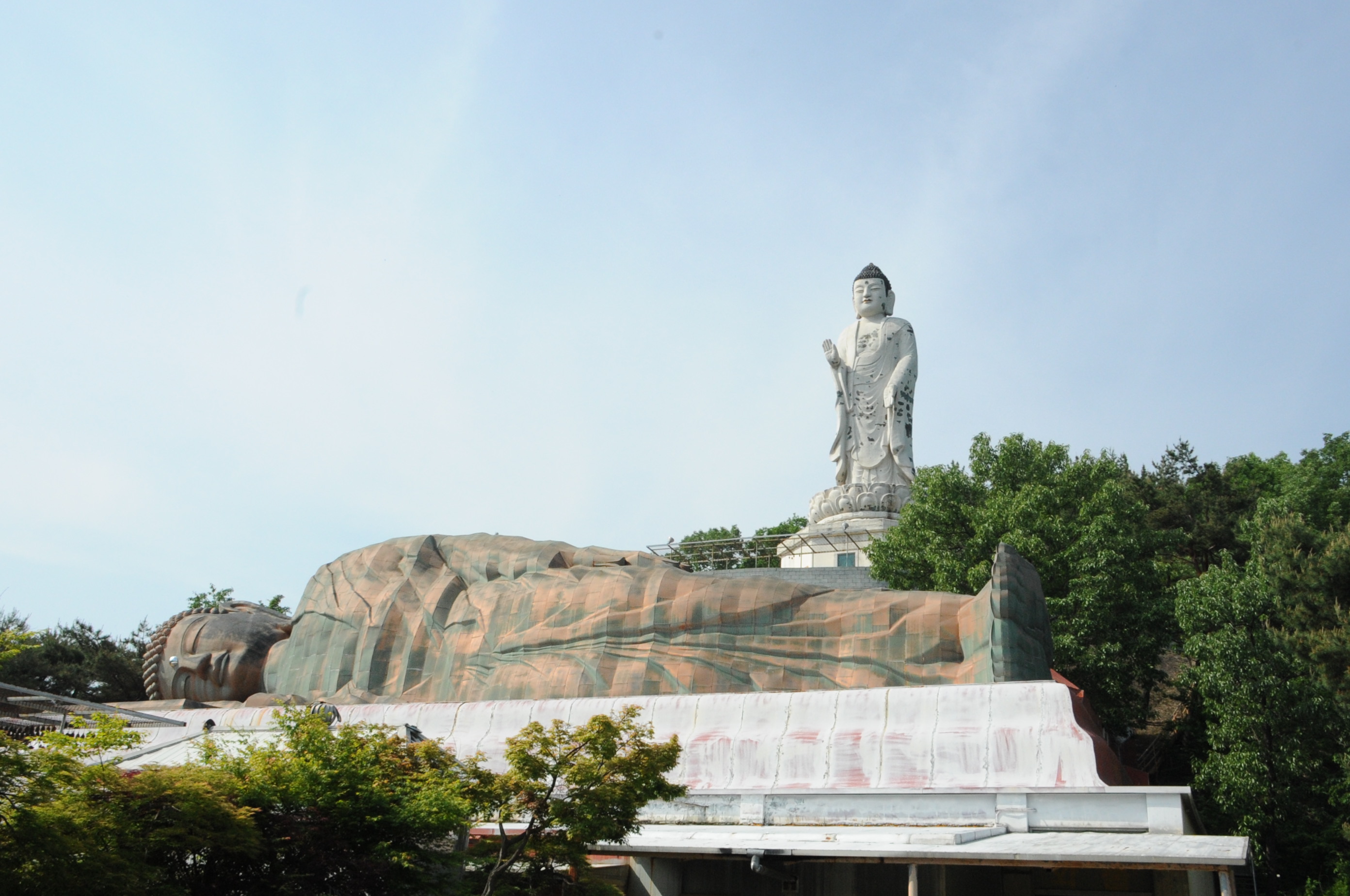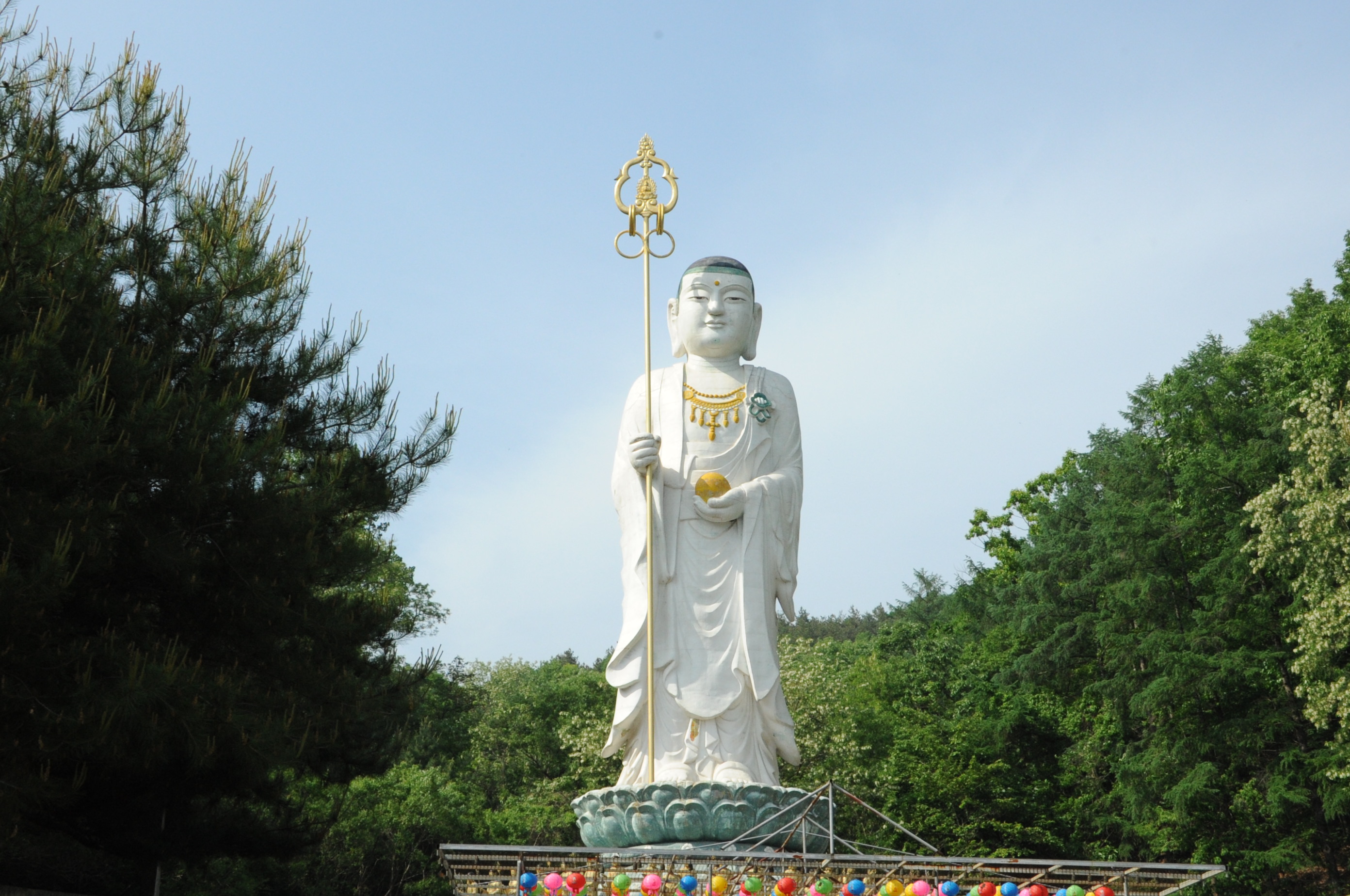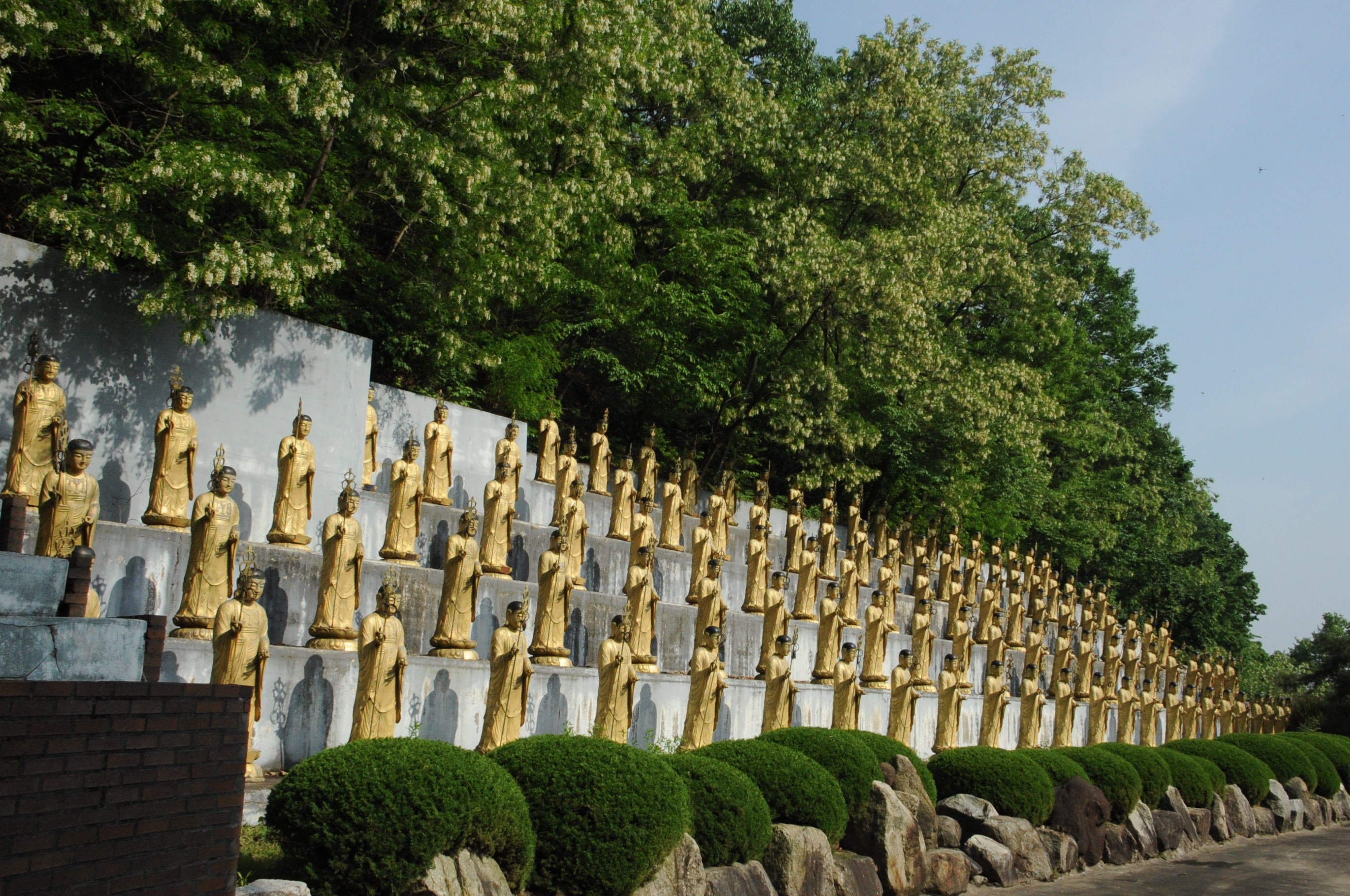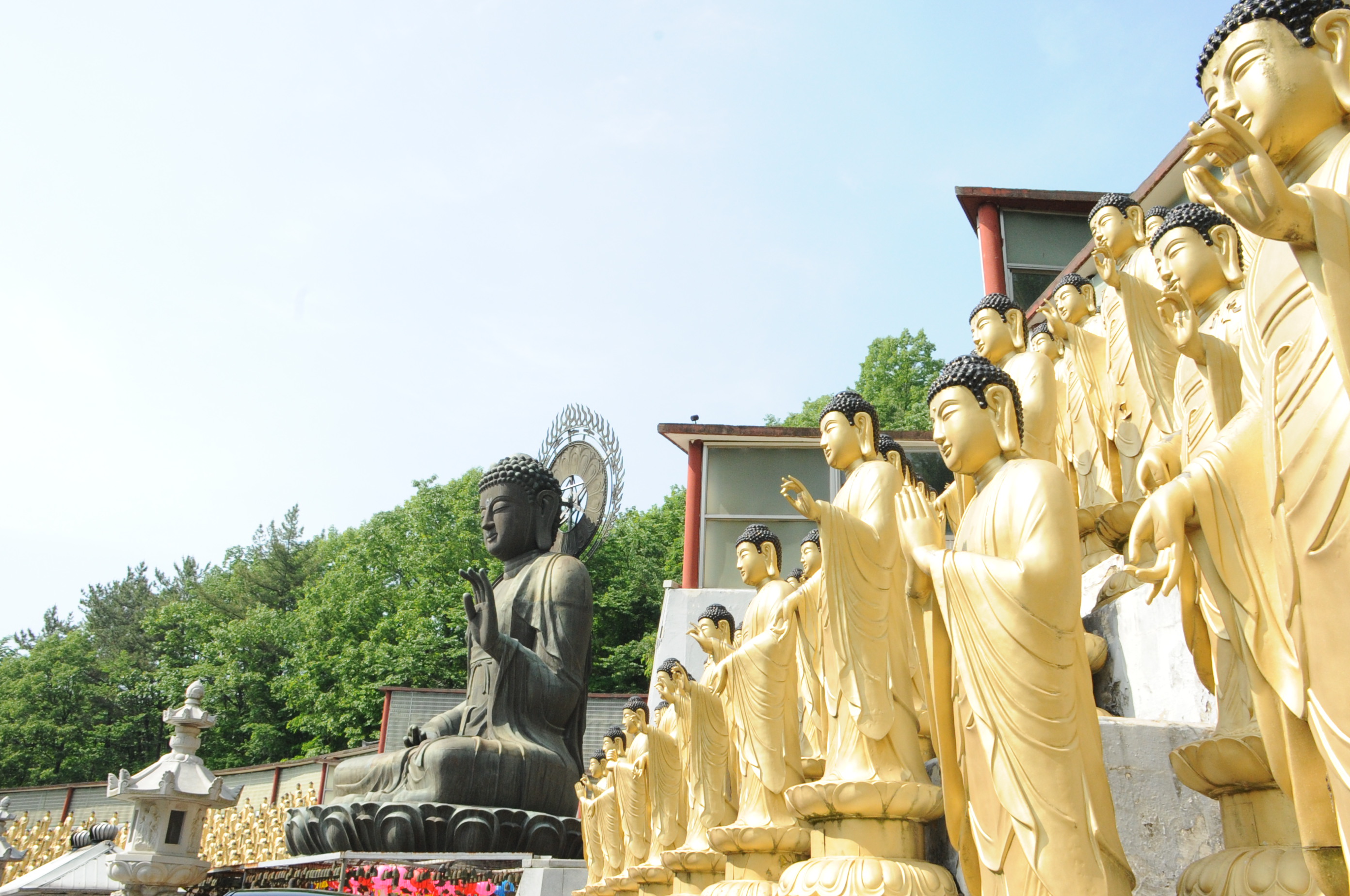 또한, 전체길이 210m에 이르는 말굽 모양의 계단 10개에는 1,000 불상이 있는데, 이 불상들도 높이가 1.9m로 높다. 그뒤로는 개인의 소원을 담는 원불로 야광여래 333,333 불상이 있는데, 이는 석가가 이세상의 중생을 직접 교화할 때 영취산에서 1,250여 명의 비구승을 모아놓고 대승의 참진리인 《묘법연화경》을 설법하던 모습을 그대로 재현한 것이다.