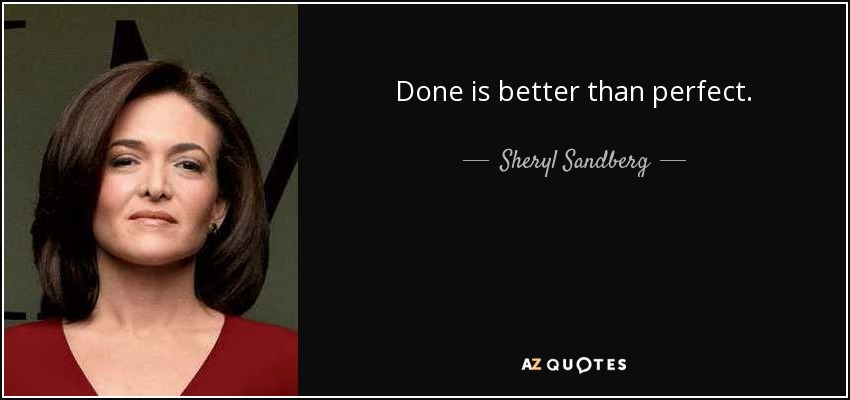 ■ 완벽주의에 도전한다. 완벽주의는 작업/프로젝트를 필요 이상으로 크게 만든다. 미루기기만 하는 심리적 고통으로 이어질 수 있다. 일이 쌓일수록 압박감이 커지면 점점 사태는 심각해진다. 페이스북, 월트디즈니 이사를 거쳐 메타 COO를 역임한 '셰릴 샌드버그(Sheryl Sandberg)'는 "완벽한 것보다 일을 완수하는 것이 낫다"는 명언을 했다. 잘한 것이 "충분히 잘한 것인지 알아보려면, 작업/프로젝트에 더 시간 투자할 때의 이점의 한계를 알아본다. 큰 차이가 없다면, 당장 멈추고 끝낸다. 모든 것이 완벽할 수 없다는 것도 인식해야 한다. 이메일도 중요도에 따라 선별 처리 하면 충분하다.