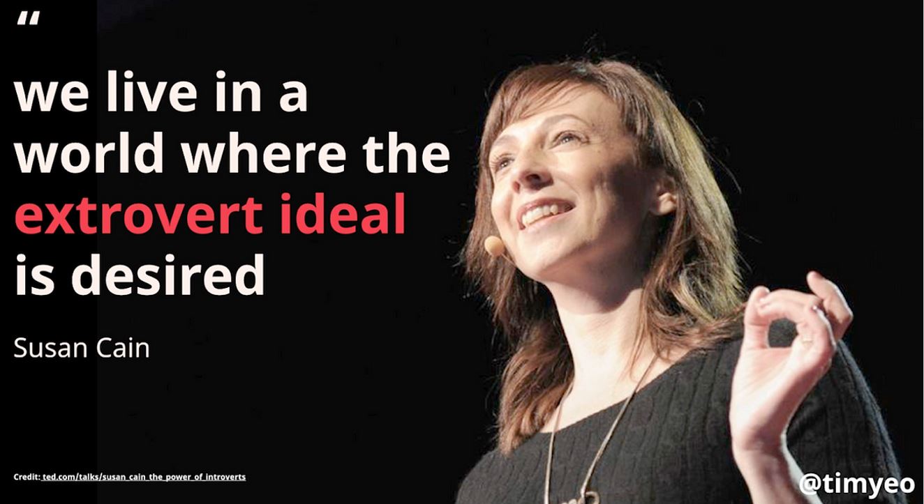 별의별 사람이 목소릴 낸다. 목소리 큰 놈이 이기는 세상이다. 리더가 목소리를 높여도 한 가지 어려움이 있다. 숨겨진 힘이 팀에 영향을 미친다. 작가 'Susan Cain'은 "외향적 이상 - 이상적인 자아는 사교적이고 알파이며 주목받는 것을 편안하게 여긴다는 만연한 믿음이다. 전형적인 외향형은 사색보다는 행동을, 신중함보다는 위험을 감수하는 것을, 의심보다는 확신을 선호한다. 틀릴 위험이 있더라도 빠른 결정을 내리는 것을 선호한다."고 했다. 이에 부합하지 않은 사람들은 특히 집단 환경에서 자기 의견을 말하는 것을 더 꺼릴 수 있다. 그 결과, 최고 아이디어는 토론의 장에 오르지 못하는 경우가 많고 빛을 보지 못할 수도 있다.모두에게 발언권을 주려고 노력하지만, 외향적 아이디어가 증폭된다. 카리스마 넘치는 소수보다, 리더는 숨겨진 아이디어를 채굴해야 한다.
