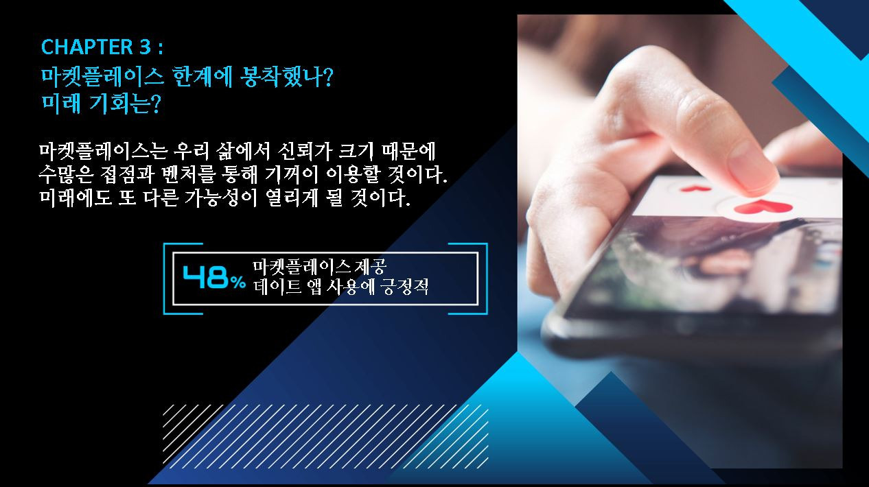 쇼핑, 음성 지원, 콘텐츠 등 삶에서 매우 중요한 역할을 한다. 마켓플레이스가 미래에는 무엇을 제공할 수 있을지, 그리고 소비자의 욕구가 어떨지? 소비자 48%가 대출, 모기지, 연금, 보험 등 은행/금융 상품에 개방적이라고 답했다. 미래 기회는 여전히 열려있다.