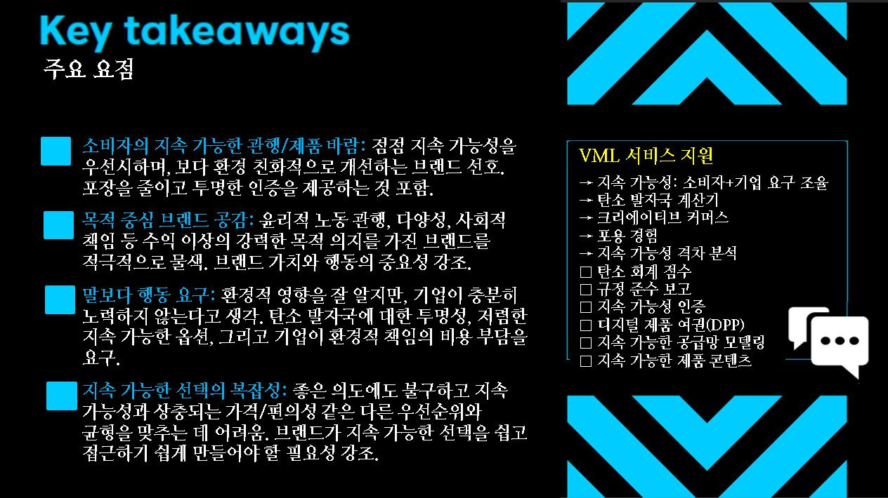 기업의 목적 역할은? 판매와 수익 이상의 더 큰 기여를 고려해야 한다. 63%는 단순히 제품/서비스 판매 이상의 목적이 분명한 브랜드/소매업체에서 쇼핑하는 것을 좋아한다. 목적은 다양성과 사회 문제에도 영향을 미친다. 62%가 다양성과 사회 문제에 대해 긍정적인 소통과 행동을 하는 회사에서 제품을 구매할 의도가 더 높다고 말했다.