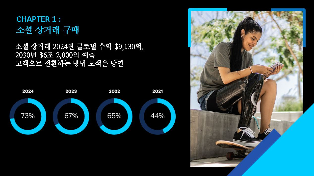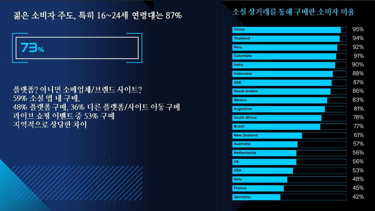 욕구가 커지고 있어 글로벌 소비자 62%가 앞으로 소셜 미디어 플랫폼을 통해 더 많이 쇼핑할 의향이 있다고 말했다. 이는 작년의 53%에서 증가한 수치다.