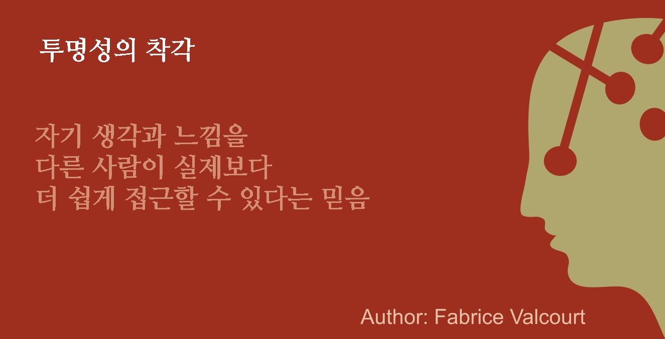 '조명효과'는 심리학자들이 말하는 '투명성의 착각'이라는 개념과 밀접한 관련이 있다. 다른 사람이 나의 내면을 잘 읽을 것이라고 과도하게 기대하는 것 경향이다. 생각, 감정, 심지어 신체적 감각조차도 주변 사람이 실제보다 더 잘 보인다고 가정하는 것이다. 발표석상에서 내가 긴장했다는 것을 모든 사람이 알아차릴 것이라고 믿은 적이 있는지? 실제로는 자신이 상상한 것보다 훨씬 덜 눈에 띄었을 것이다. 이것이 '투명성의 착각'이다.