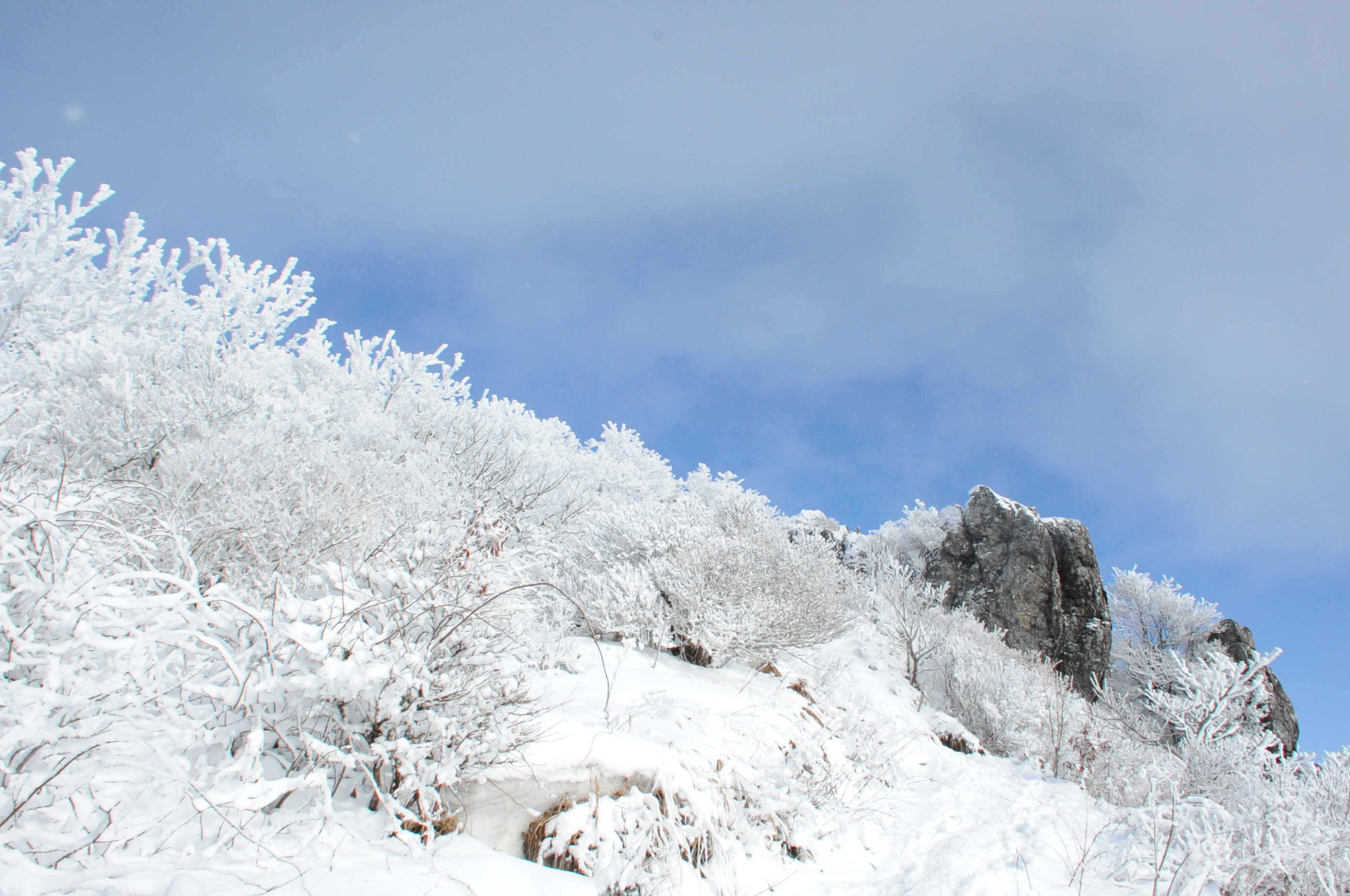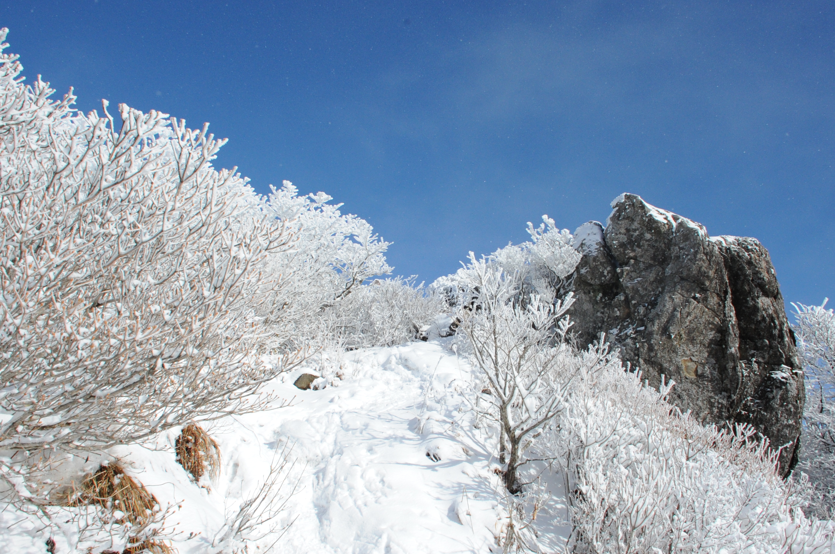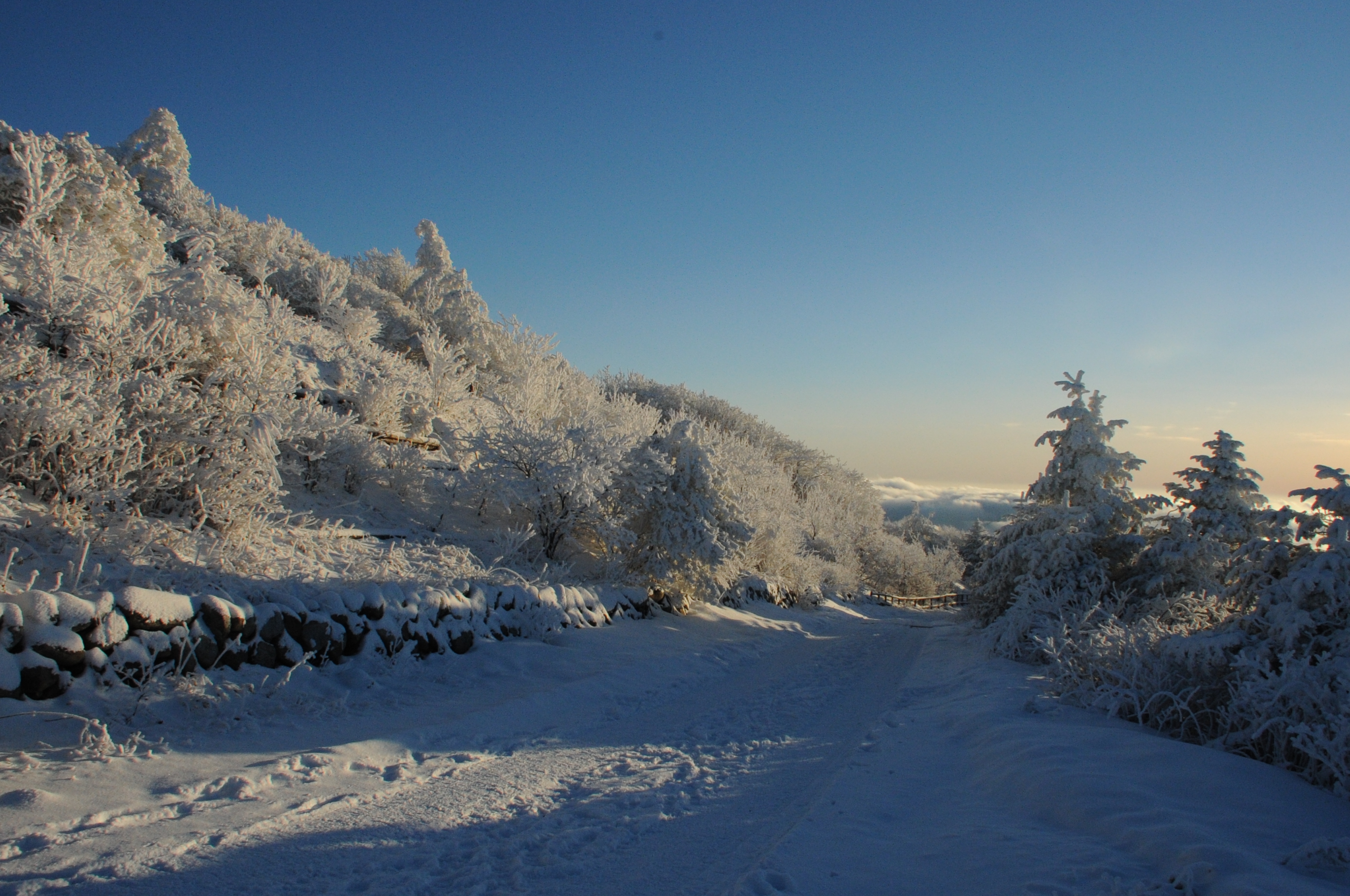 2023-01-16. 천안에서 새벽 6시에 아내와 함께 소백산 등정을 위해 출발하여 9시에 도착, 죽령 휴게소에 애마를 주차하고 시작되는 소백산산행, 처음부터 환상적인 상고대의; 향연에 감탄을 하다보면 4km 가다보면 제2 연화봉이 나오며, 여기에 환상적인 천문대가 구름속에 가려졌다 나왔다를 하면서 천상의 분위기를 연출합니다. 그 뒤로 계속 올라가다 보면 눙 속에 펼쳐지는 상고대와의 어우러짐과 함께 멀리서는 구름을 몰고온 칼바람이 옷깃을 여미게 하며 날아가는 구름사이로 보이는 파란 하늘의 모습이 장관을 연출합니다.