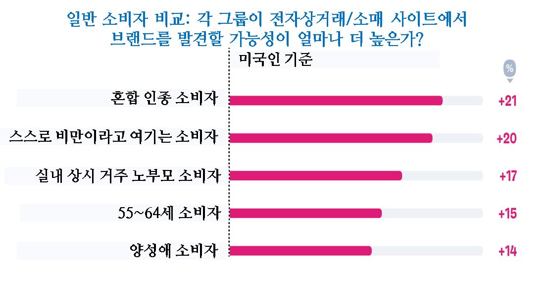 소매 미디어 네트워크는 다양한 집단이나 서비스 도달이 미흡한 사각지대의 소비자와의 연결 잠재력이 크다. 이러한 소비자 집단은 소매/전자상거래 사이트 사용이 훨씬 활발하다. 브랜드가 다양한 고객과 소통하는 잠재력이 높은 채널이다. 집에 상시 머무르는 부모, 자신을 비만 또는 과체중으로 인식하는 소비자 등 이런 유형의 집단은 기존 광고 채널에서 간과되는 경우가 많다.