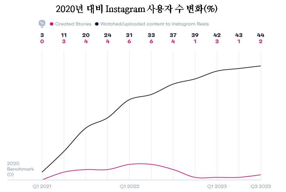 Instagram은 더 넓은 변화를 상징한다. 소비자는 소셜 미디어를 예능에 더 많이 사용한다. 개인적인 공유에는 상대적으로 덜 사용한다. 스토리 제작이 상당히 안정적으로 유지되고 있는 반면, Reels는 새로운 추진력을 보인다. 짧은 형식의 비디오는 궁극적으로 창의력을 발휘할 수 있는 훌륭한 놀이터이자 강력한 브랜드 참여를 유도할 기회다. 짧은 클립을 보는 사람 중 절반은 긴 콘텐츠보다 해당 클립에 대해 "좋아요" 또는 "댓글 달기"를 더 많이 한다. 62%는 클립을 가족/친구와 더 많이 공유한다고 응답했다.