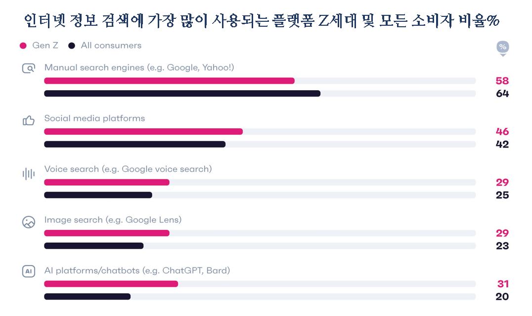 ■ AI 챗봇은 Z세대가 가장 많이 사용하는 3대 검색 플랫폼 중 하나