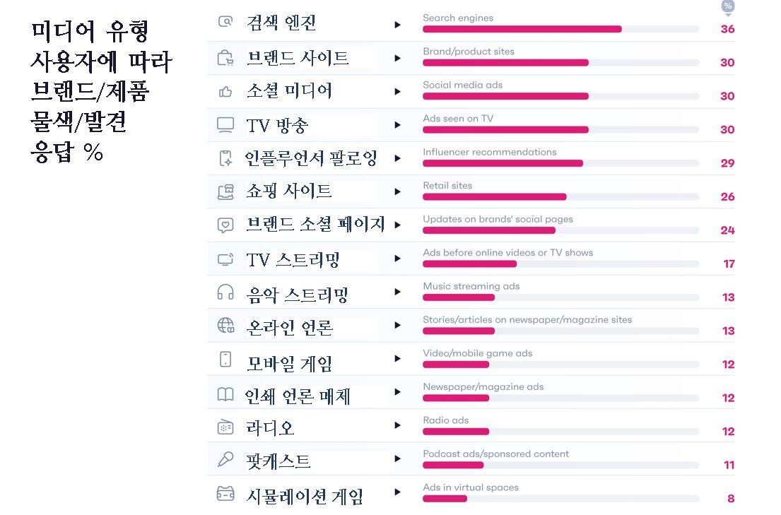 미디어 채널 전반에 걸쳐 미디어 채널 사용 행태가 너무나 겹친다. 브랜드 노출부터 보자. 마케팅 담당자 4명 중 1명 이상이 브랜드 인지도 제고가 성장 촉진에 중요한 이니셔티브라고 말한다. 브랜드 이름을 널리 알리고 싶다면, 특정 채널의 가시성을 높이는 것이 더 좋다. 주로 검색 엔진, 브랜드/제품 사이트, 소셜 미디어 광고 등과 같이 검증된 매체들이다. 검색 엔진 사용자 3분의 1 이상이 브랜드/제품을 찾으려고 검색한다. 신흥 플랫폼에 너무 주의를 빼앗겨 SEO(검색엔진 최적화)를 간과해서는 안 되는 이유다. 이와 대조적으로 시뮬레이션 게이머는 8% 정도만이 가상 공간 광고를 통해 게임을 찾는다. 고객 포럼과 커뮤니티에 접근하기 위해 제품을 구매한다. 이런 게이머 집단은 인지도 확산보다는 기존 고객 간의 충성도를 키우는 것이 훨씬 더 좋다. 나이키랜드(Nikeland)와 반스 월드(Vans World)가 좋은 예다.