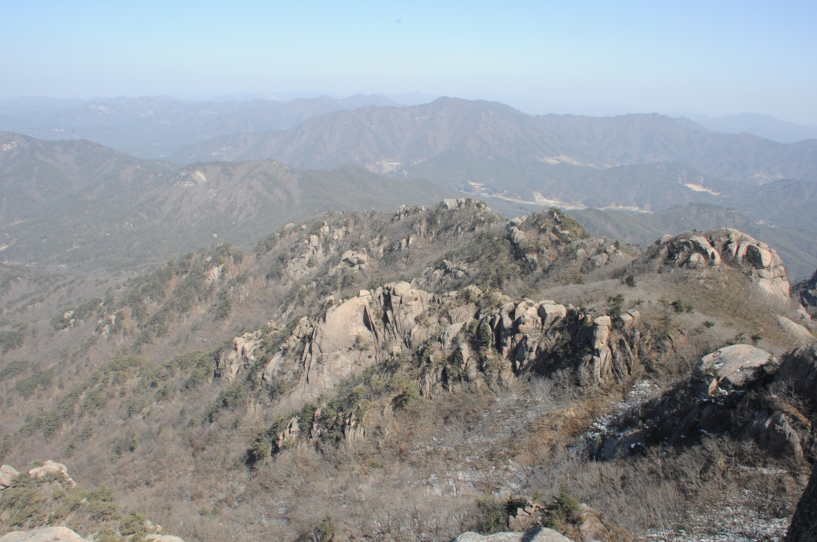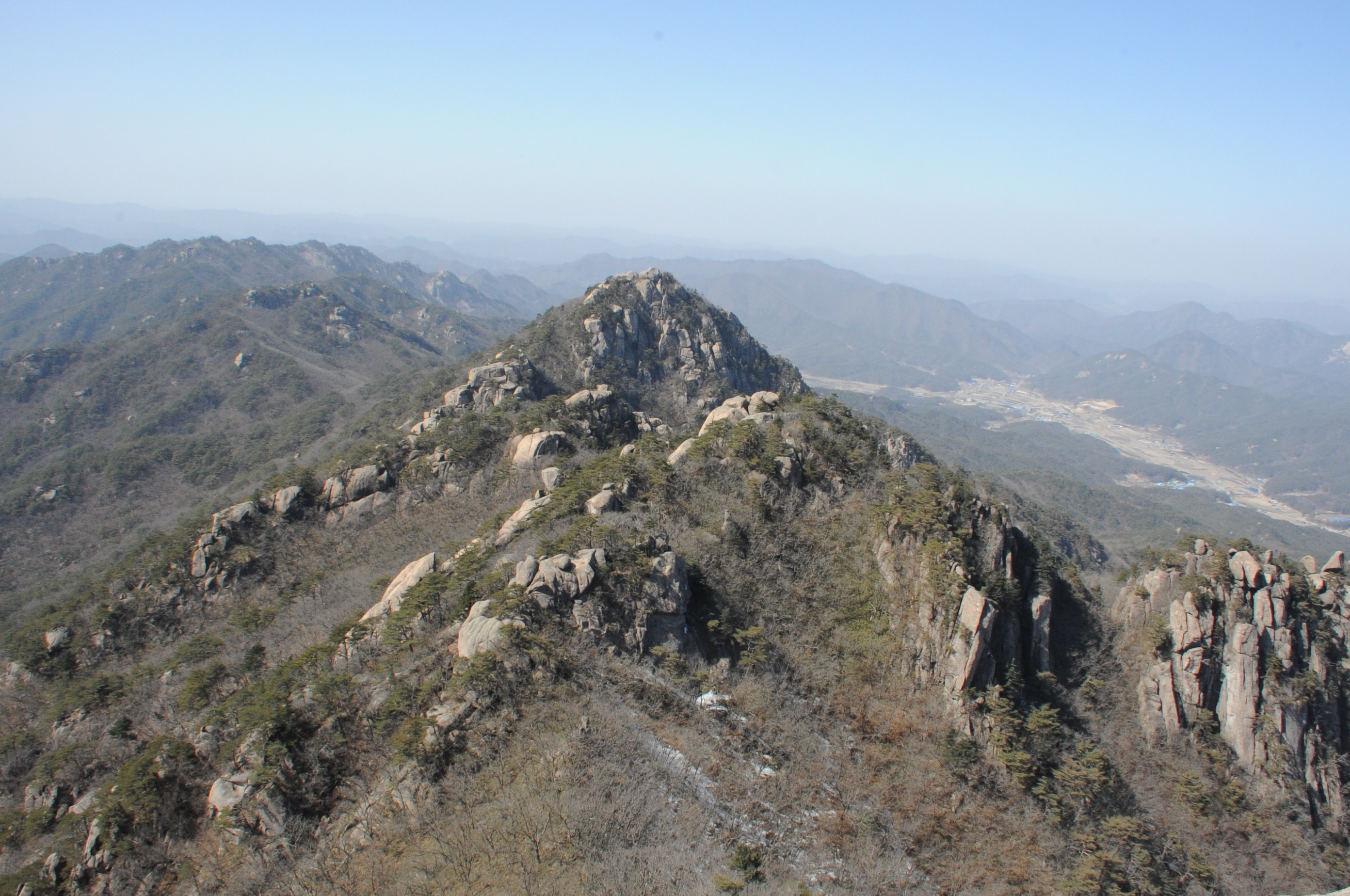 천왕봉을 뒤로하고 능선을 따라 문장대로 이동합니다. 가는 곳곳에 바위들의 희안한 모습들을 감상하며 가다보니 중간에 휴게소겸 매점이 있네요. 그 꼭대기에 매점이라니, 잠시 쉬며 간식을 먹은 후 출발하여 가다보니 멀리 문장대가 보입니다.