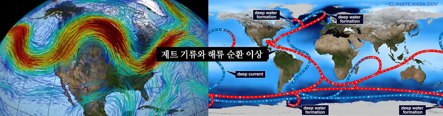 극지는 춥고 적도는 덥다. 그 경계선은 온도 차로 제트 기류가 흐른다. 최근 온난화로 기류가 느려지고 구불구불해졌다. 찬 공기가 밀려 내려와 한파가, 더운 공기가 밀려 올라가 폭염이 극성이다. 겨울 평균 10~15도였던 텍사스는 낮 영하 10도 밤 영하 20도. 추위에 화제가 이어졌지만, 소화전이 얼어 진압할 수 없었다. 역사상 최대 산불도 발생하여 소가 대규모로 쓰러졌다. 정전과 재해로 도시가 마비되고 바다거북이 죽어갔다. 한국도 초대형 산불이 잦아졌다. 서울 면적의 16배 이상이면 초대형급이라 한다. 괴물 같은 산불은 터키, 그리스, 알제리, 호주, 이탈리아, 미국 캘리포니아 등 사상 최악 상태다. 프랑스에서는 기우제까지 지낸다. 2024년 4월 14일, 4월 기록으로는 32.2도 기록 경신이다. 강 수위도 낮아져 캘리포니아 농장의 아몬드도 뿌리째 뽑혀 사라졌다. 미국/멕시코 7개 주를 흐르는 콜로라도강은 '메가 가뭄'으로 2000년부터 말라간다. 체코 엘베강도 마찬가지다.