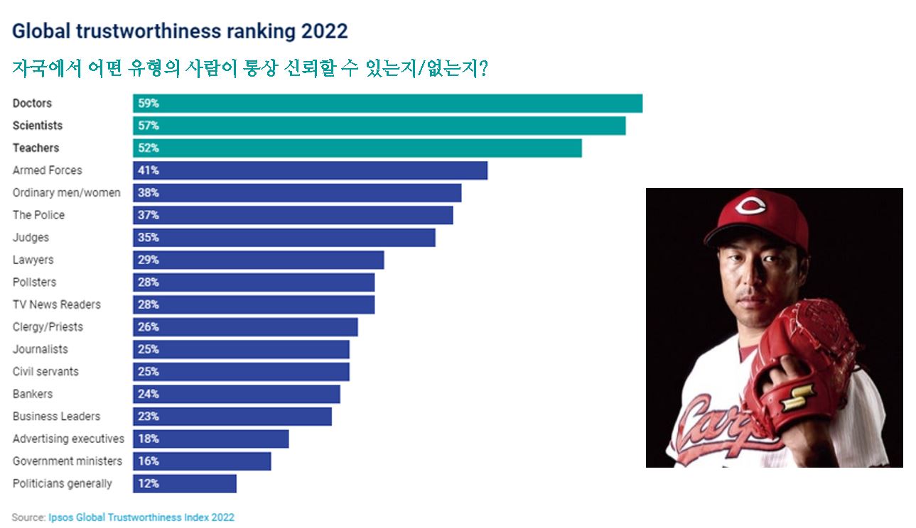 신의는 믿음과 의리를 일컫지만, 신뢰는 한 사람의 다른 사람에 대한 개인적 믿음을 일컫는 반면, 신의는 도덕적 가치로서의 믿음과 의리다. 사람과 사람 간에 신뢰가 깨지면 미안하단 말은 아무 의미도 없다. 굳게 믿고 의지하는 사람일수록 조심해야 한다. 일과 삶에서 관계는 필수다. 신뢰 없이는 진정한 관계도, 협업도, 발전도 있을 수 없다. '스티븐 코비'도 관계를 하나로 묶어주는 신뢰는 삶의 접착제라고 했다. '헤밍웨이'도 먼저 의심치 않고 상대를 신뢰해야 더 강한 관계와 유대감으로 이어질 수 있다고 했다. 신뢰는 진실로 시작하여 진실로 끝난다. 얻기는 힘들지만 잃는 것은 쉽다. 오래걸려 회복해도 원래의 모습은 될 수 없다. 어느 나라나 의사, 교사, 과학자는 신뢰가 가장 높고 광고인, 정부 각료, 정치인들은 신뢰가 갖아 낮다. 요즘 한국인들은 누구를 믿고 살아야 할지 가닥 잡기가 어렵다.