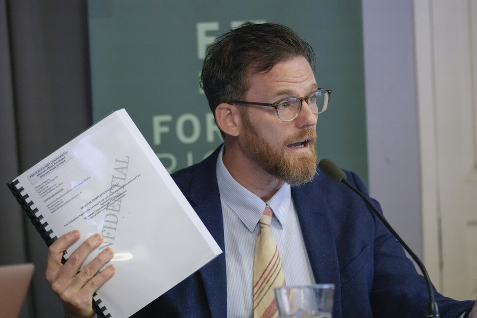 사진: 독일 검찰에 미얀마 군부를 고발한 인권단체 ‘포티파이 라이츠’의 대표 매슈 스미스 2023년 1월 방콕 기자회견