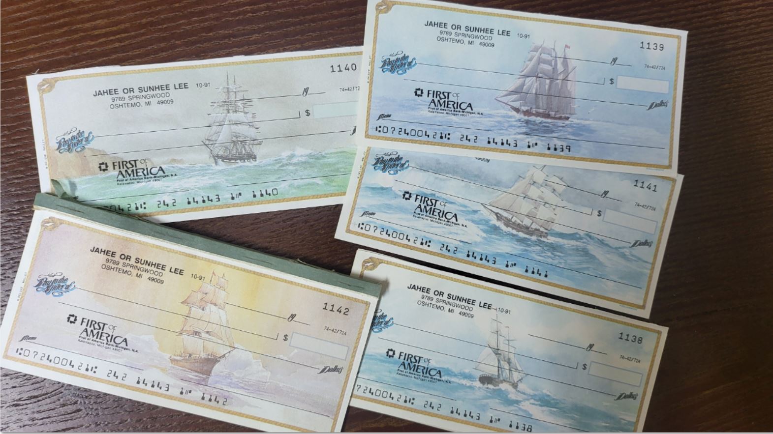 신구 세대의 보편적 차이 중 하나는 씀씀이다. 신용 카드카드가 경쟁하다 보니 초과 지출을 부추기고 마이너스 한도가 생겨 돌려 막기와 카드론이 사회적 골치다. 북미에는 주로 입출입이 자유롭고, 각종 공과금이 스쳐 지나가는 계좌(Checking Account), 특정 용도를 위하여 묻어두는 저축성 계좌(Savings Account) 두 가지가 있다. 신용카드를 사용하면 높은 수수료가 발생하는 경우가 있지만, 수표는 수수료가 없다. 수표(체크)는 계좌이체 역할을 할 수 있기 때문에 여전히 사라지지 않는 신용 기반의 미국 문화 중 하나다. 20세기 유물로 사라지고 있다고는 하지만 아직도 세금납부, 임금 지불, 물건 대금, 부동산 대금/수수료 지불 등 많은 곳에서 사용되고 있다. 계좌 잔고 한도 내에서 사용해야 하고 수취인, 금액, 발행자 서명이 있어 안전하다. 뒷면에 양도(Endorsement) 란이 있어 현금과 같이 통용된다. 은행에 계좌를 개설하면 수표책을 살 수 있다. 요즘은 앱으로 사진을 전송하면 되니 은행에 입금하러 갈 필요도 없다.