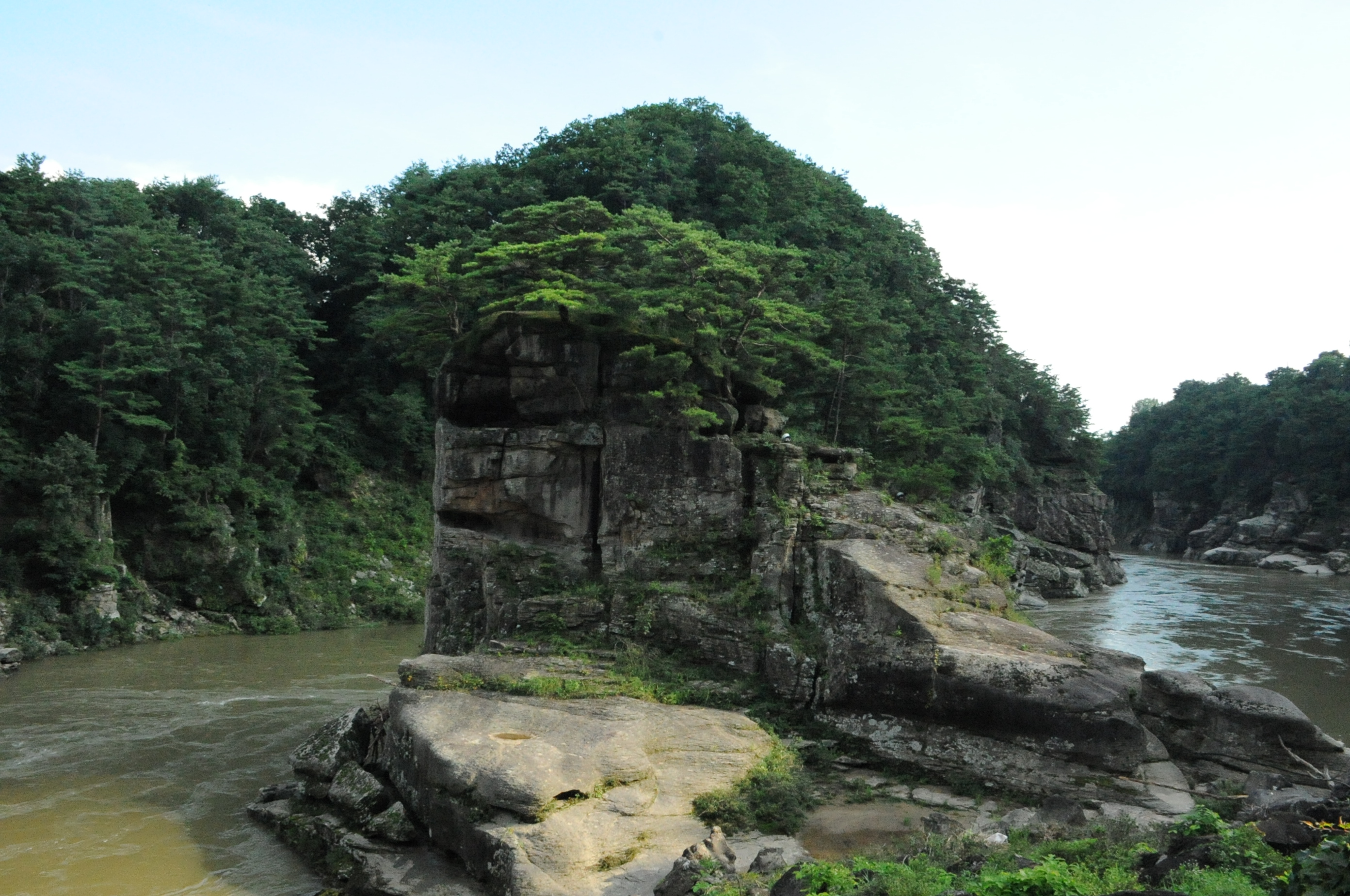 한반도의 배꼽이라고 불리는 국토 정중앙 양구에 떠 있는 한반도 섬이라니 완벽한 곳에 자리를 잡았다고 생각했다. 일단 한반도섬에 들어가기 전에 온전한 한반도섬 의 모습을 보는 것을 추천하고 싶다. 호수 반대편 동수리 쪽에 위치한 한반도섬 전 망대에 들러 전체적인 섬의 모습을 바라볼 수 있다. 전망대에 도착해서 계단을 조 금만 오르면 파로호와 한반도섬을 한눈에 담을 수 있다. 전망대에 망원경이 있는데 망원경으로 바라보면 한반도 지형이 조금 더 정확하게 보인다.