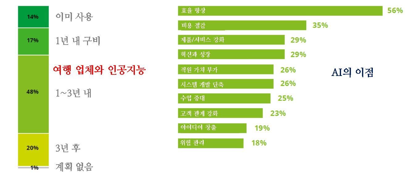 ■ 기하급수적 기술이 산업에 진입: 여행 업체는 운영 효율성에 인공 지능(AI)을 적용하여 상당한 비용 절감과 여행 경험을 개선 효과를 얻을 수 있다. AI는 서비스 탐색, 주문, 여행 경험에 변혁적 혁신을 초래할 큰 잠재력이 있다. 그러나 여행의 의미, 편의, 기능을 강화하려면 과거 틀을 벗어나 최첨단 데이터 캡처, 큐레이션. 활성화에 전념해야 한다