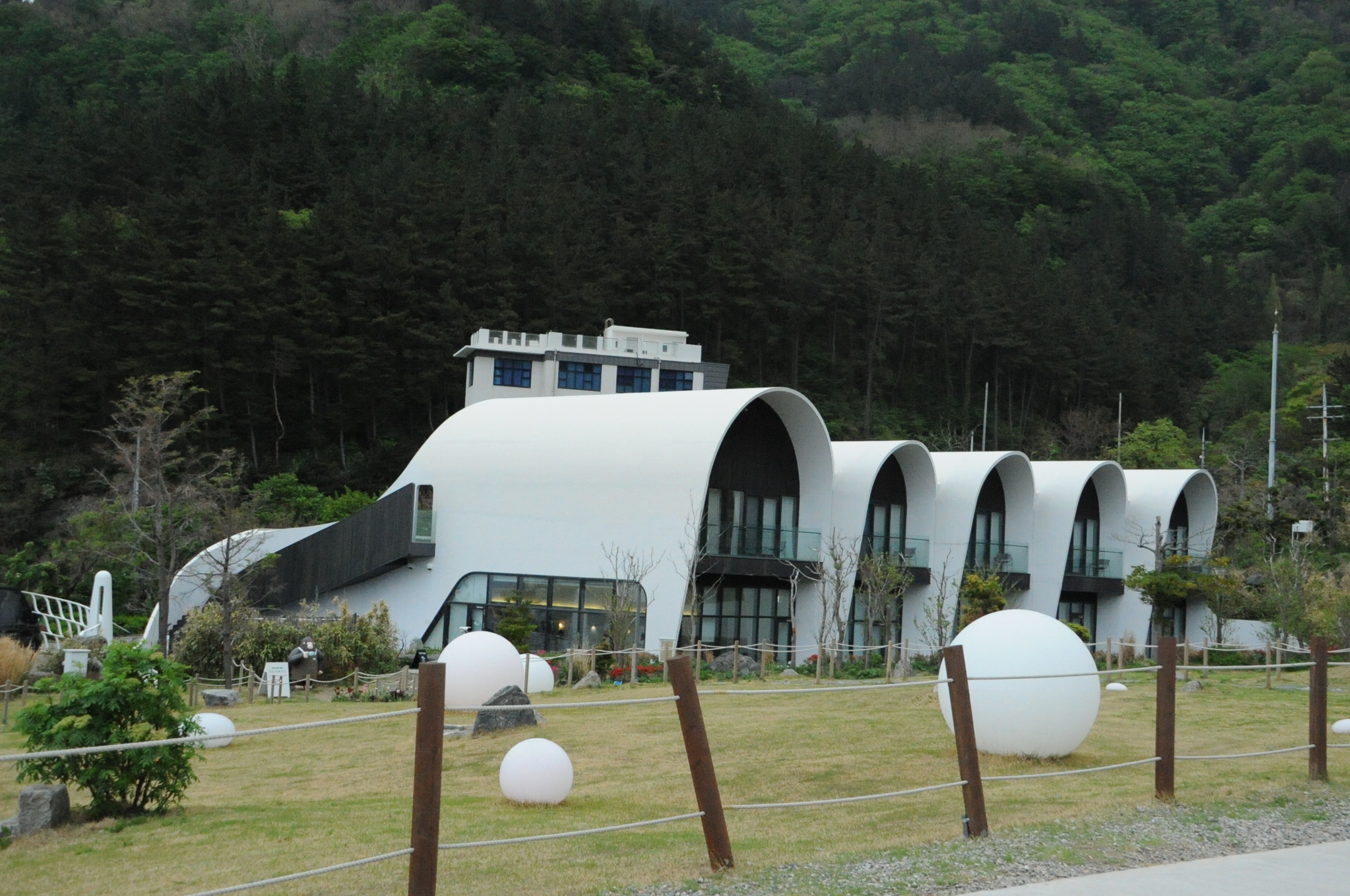 힐링스테이 코스모스는 울릉도의 송곳산 옆 벼랑 끝 대지에 위치하고 있다. 호텔은 해와 달의 궤적을 고려하여 나선을 활용한 기본 형태를 구상하였다. 건물 중심에서 외부를 향해 휘어지면서 전개되는 나선 형태의 6개의 볼트 구조는 가장 중요한 형태적 요소이다. 6개의 볼트는 각각 독립적인 내부 공간을 구성한다. 각각의 공간에 진입할 때에는 나선 형태로 휘어진 공간으로 인해 외부 경관이 일시적으로 차단되지만 볼트를 따라 걸어 들어가면서 외부 경관이 서서히 내부를 향해 열리며 각각 독특한 절경을 마주하게 된다. 덕분이 힐링스테이 코스모스에 머무는 사람들은 아름다운 건축물과 주변의 경관에 자연스럽게 몰입할 수 있다. 게스트의 안전과 편의를 위해 청결과 소독에도 많은 신경을 쓰고 있다. 매일 객실 청소를 하는 것은 물론 침구류도 깨끗하게 관리된다. 코로나 19를 대비해 정기적인 환기와 소독을 하는 것은 물론 방역관리자를 지정해 거리두기 매뉴얼을 꼼꼼히 체크한다. 투숙객에게 손소독제가 포함된 힐링키트(트래킹 맵, 울릉도 특산품 간식 포함)를 제공한다. 숙소가 참 아름다원고, 주변환경도 울릉을 대표할만 하다.