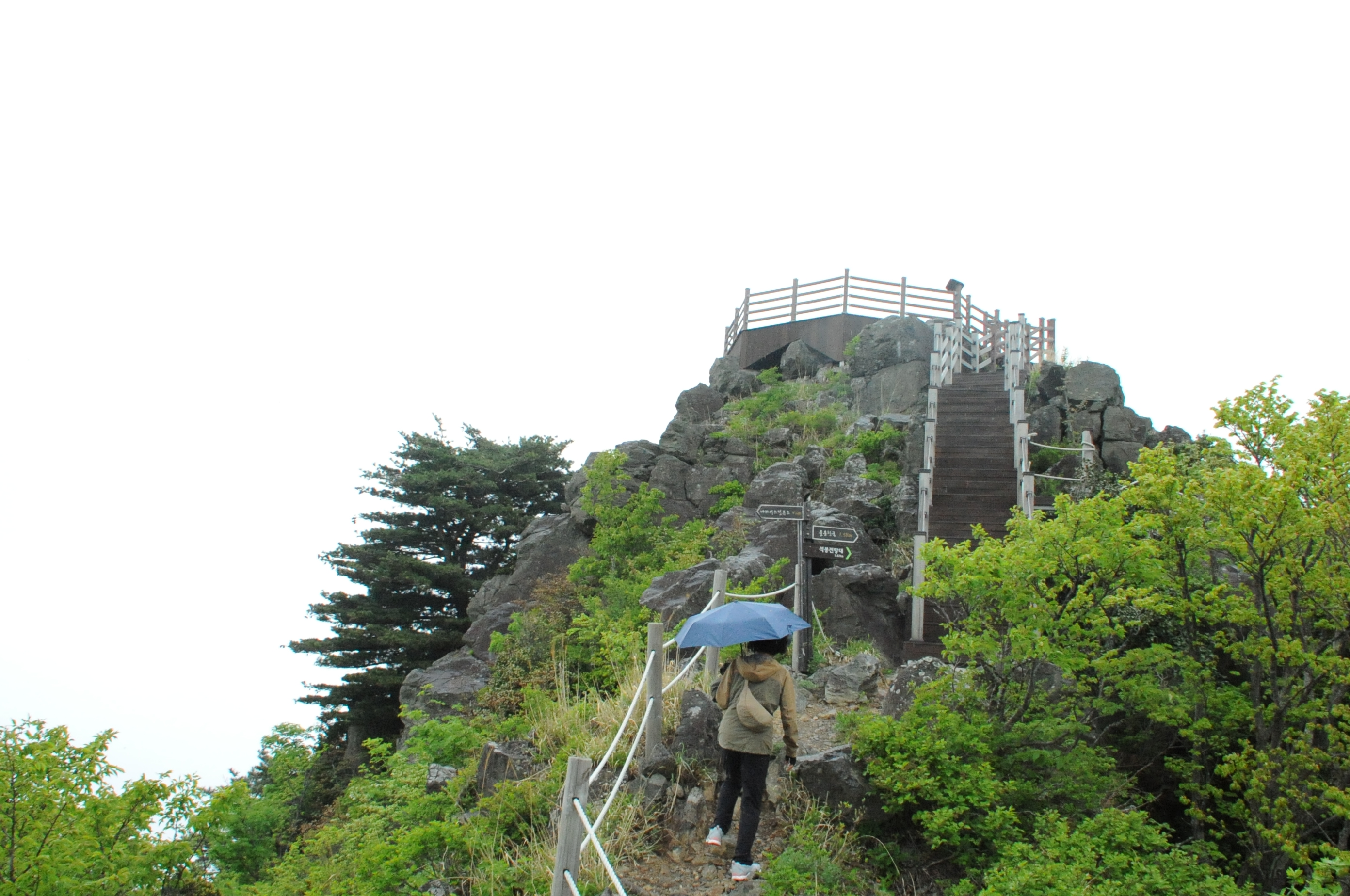 정상에 도착하니 부슬 부슬 비가 내리기 시작한다.