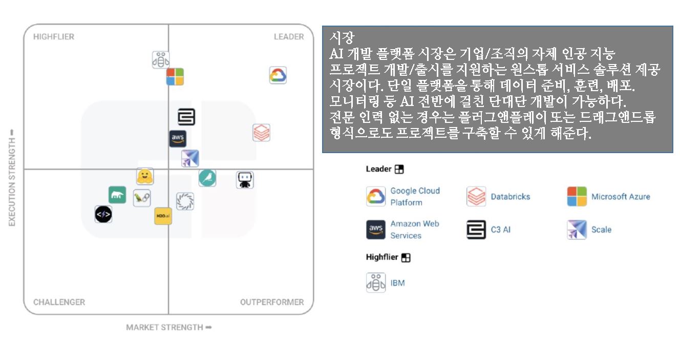 AI 개발 플랫폼은 새로운 것이 아니다. 이미 202년대 초반 기계 학습을 위한 기업용 앱이 대중화에 즈음하여 여러 플랫폼이 존재한다. 그러나 GenAI가 새로운 시대를 열었다. 점점 더 정교해지는 모델은 기업이 활용하고 싶어 하는 새로운 앱을 개설하여 기회를 창출하는 동시에 최신 AI 작업을 지원할 만큼 빠르게 적응해야 하는 시대가 되었다.