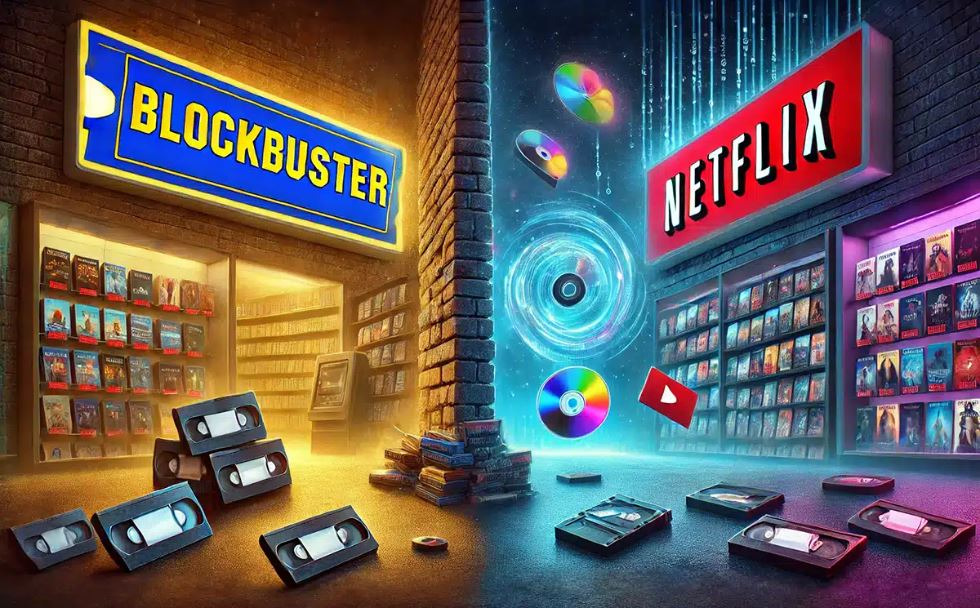 선두를 다투던 비디오 대여업체 '블록버스터(Blockbuster)'는 디지털 서비스 탐색을 주저했지만, '넷플릭스(Netflix)' 스트리밍으로 빠르게 이동했다. 한 회사는 또 아니면 꽝(모 아니면 도) 방식의 결정으로 기회를 놓쳤고, 한 회사는 유연한 '양방향 문' 선택으로 대성했다.