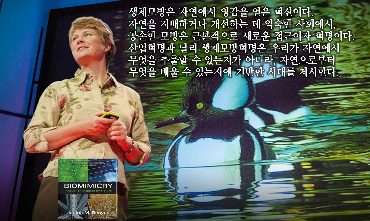 생체모방 설계자 '재니 베이어스(Janine Benyus)'도 답을 알 것이다. 그녀는 38억 년간의 자연 진화 과정에서 배울 게 있다고 주장한다. 어떻게 다른 생물체들은 1만 세대 이상이 지나도록 생존하고 진화하는 법을 배웠을까? 서식지를 잘 돌보는 것이 곧 후손을 돌보는 것이다. 세월이 급변해도 태어난 지역의 자연과 더불어서 살아간다. 인간도 치명적 결과를 만들며 지금껏 해온 것과는 달리 자기 둥지를 더럽히지 않는다면 가능한 일이다.