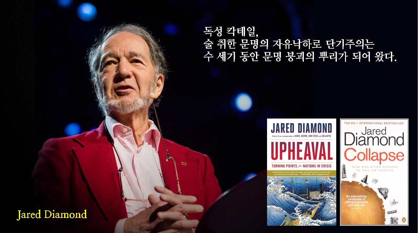 급속한 전염 효과에만 신경 쓰고 '단기 미래'조차 거의 읽을 수 없게 만든다. 불확실성은 네트워크로 연결되어 세계적으로 증폭된다. 그 모든 뒤에는 우리의 끊임없는 집착이 숨어 있다. 특히 끝없는 경제 성장 추구는 지구 시스템을 탄소 배출, 생물 다양성 손실 등 지구촌의 임계점 이상으로 밀어붙이고 있다. 아무리 크게 풍선을 불어도 터질 가능성이 없다고 믿는 어린아이와 같이 만든다. 여섯 명의 줄다리기 선수 누군가는 우리를 장님으로 몰아넣을 수 있는 '독성 칵테일' 역할도 한다. 재레드 다이아몬드(Jared Diamond)가 주장한 것처럼, '술 취한 문명의 자유낙하'로 '단기주의'는 수 세기 동안 문명 붕괴의 뿌리가 되어 왔다. 엄중한 경고이자 장기 사고 6가지 방법을 찾도록 경고하는 메시지다.