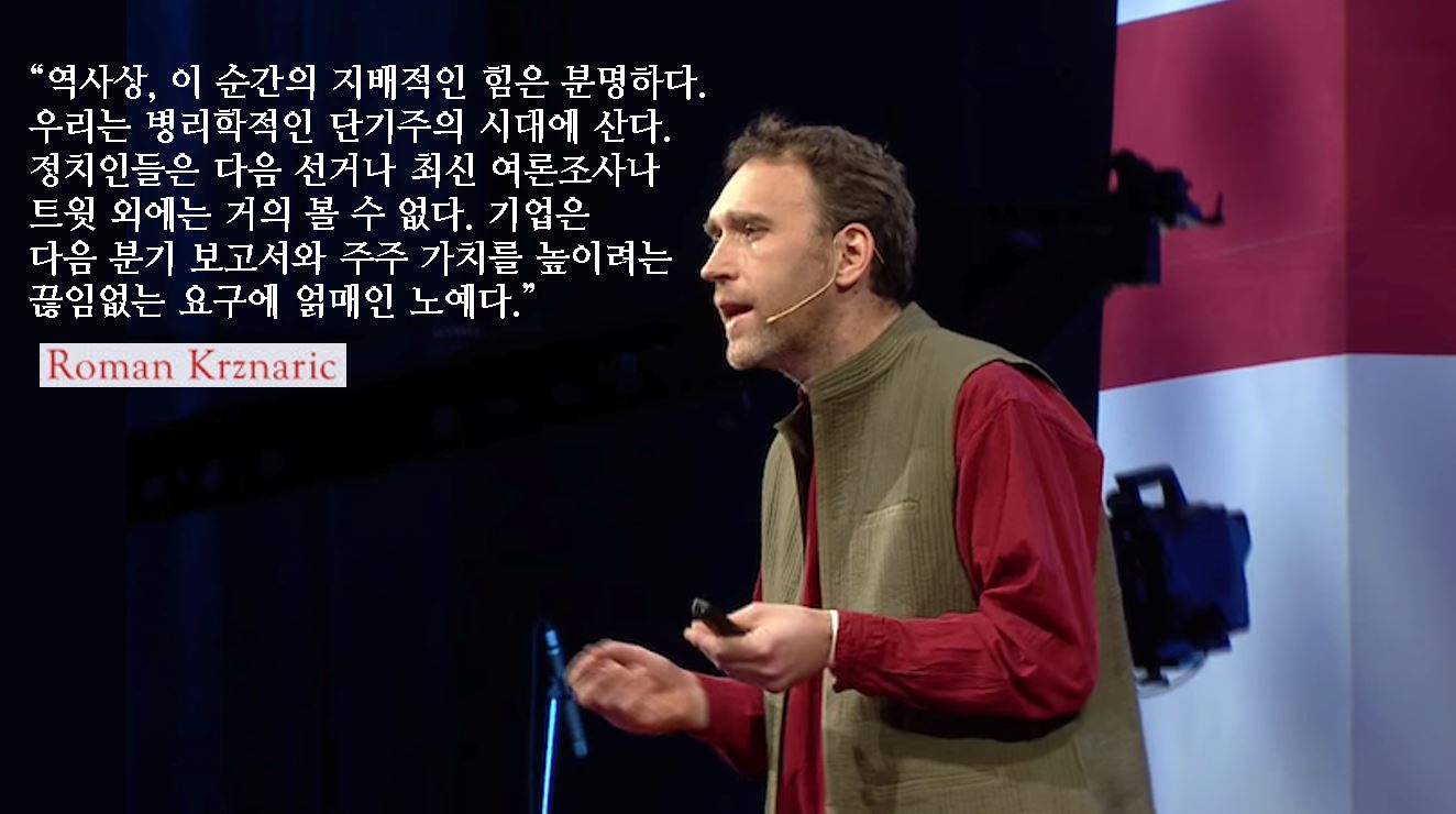 “At this moment in history the dominant force is clear: we live in an age of pathological short-termism. Politicians can barely see beyond the next election or the latest opinion poll or tweet. Businesses are slaves to the next quarterly report and the constant demand to ratchet up shareholder value.”(Roman Krznaric)