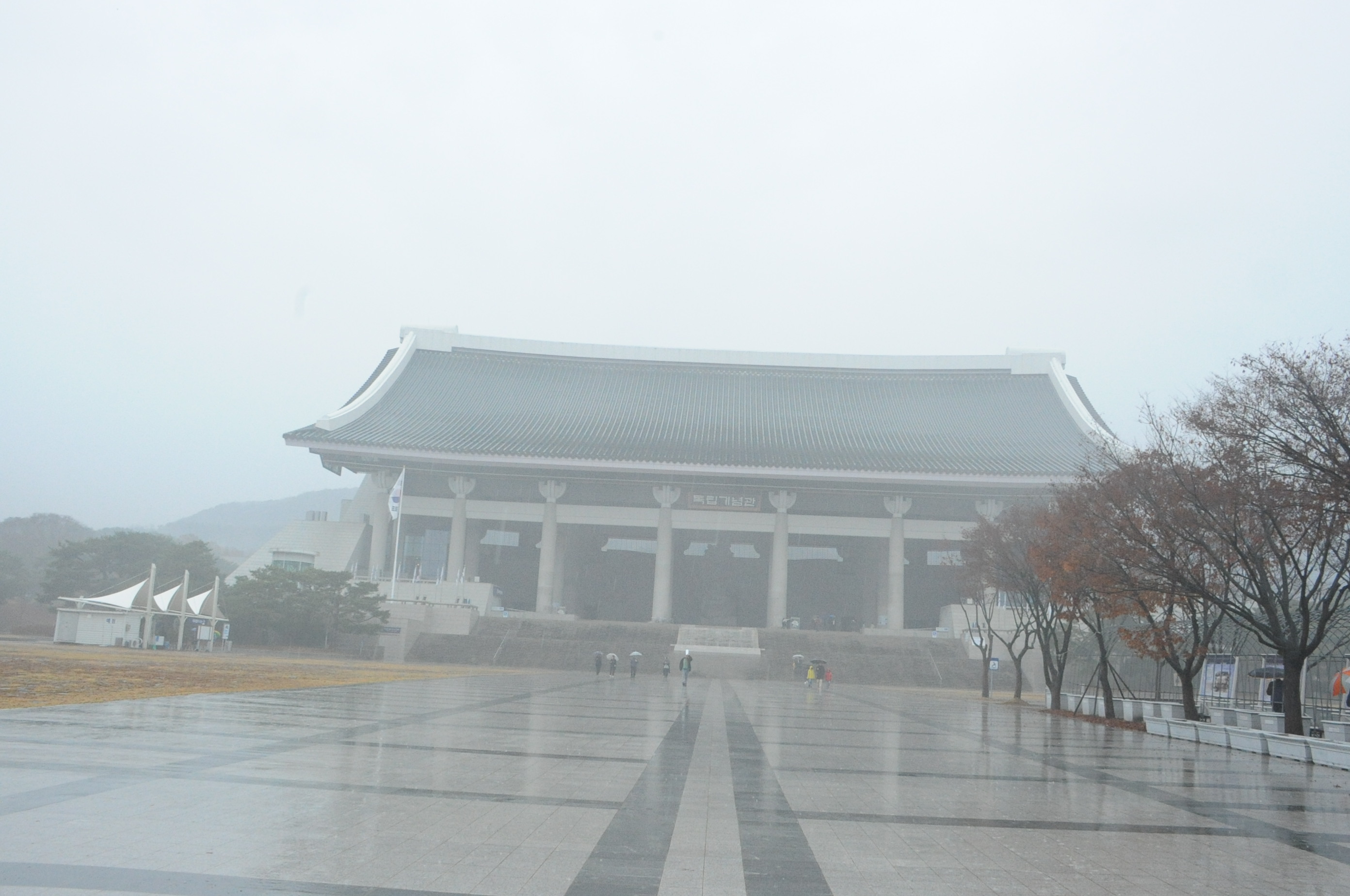 겨레의 집: 독립기념관의 상징이자 중심 기념 홀로, 수덕사 대웅전을 모방해 설계했다.