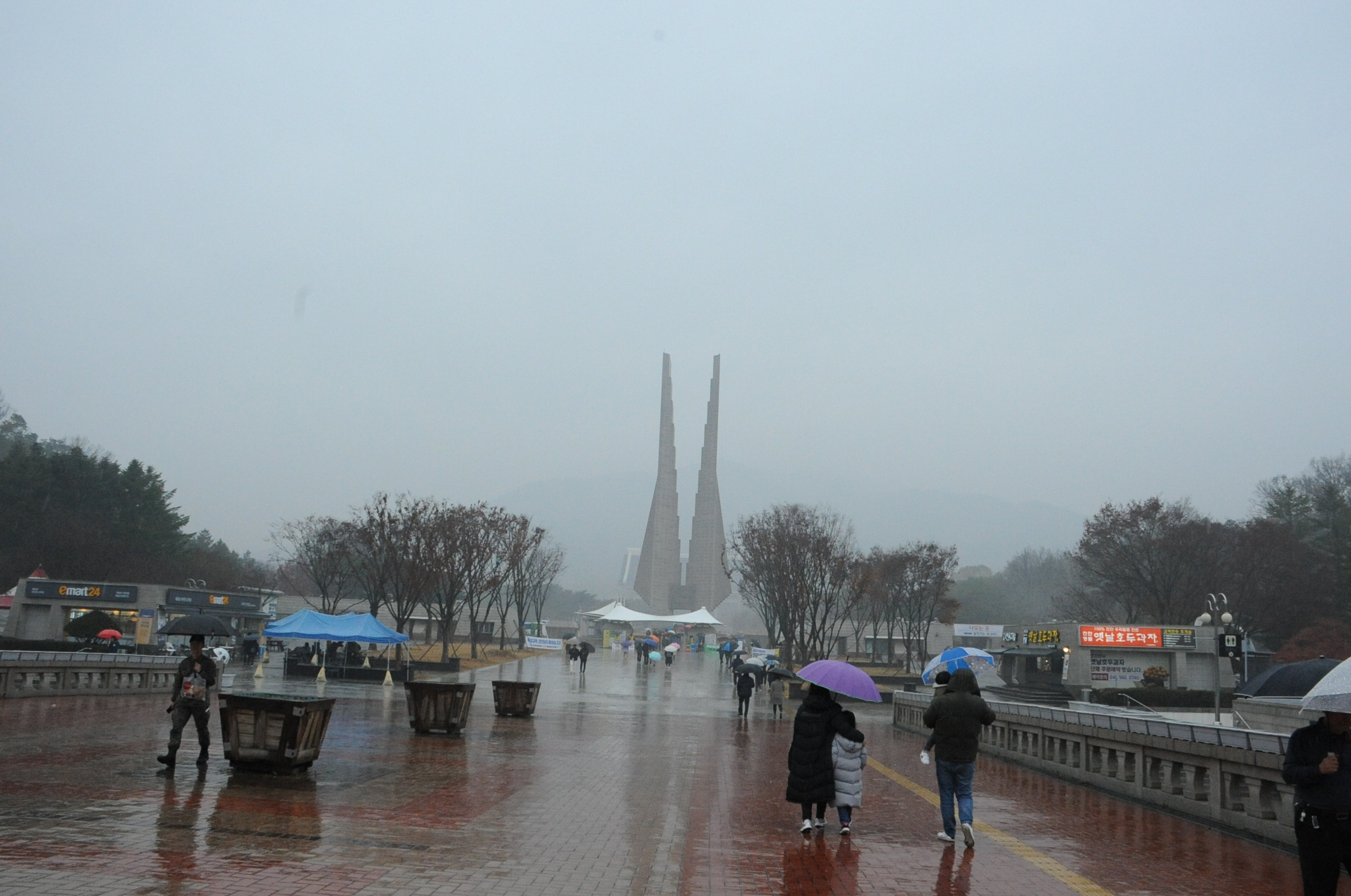 겨레의 탑: 높이 52m의 조형물로, 민족의 비상을 표현했다.