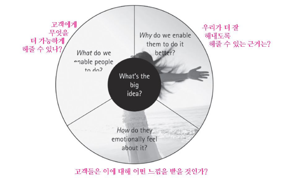 ● 빅아이디어는 회사의 이름, 로고, 슬로건이 아니라 이러한 개념 뒤에 숨은 철학이다. 기업과 사업의 목적도 반영한다.