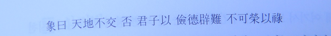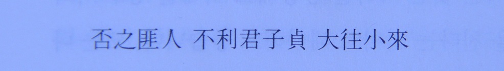 천지비괘는 좋지않은 괘의 예로 듭니다. 지천태괘와는 그 모양이 반대 입니다. 지 위에 천을 올려놓은 모양입니다. 하늘이 위에 있고 땅이 아래에 있는 형상입니다. 가장 자연스러운 모양입니다. 그런데 이괘를 비괘라 이름하고 그 뜻을 막힌것 으로 풀이합니다. 천지페색의 괘 입니다. 하늘의 기운은 올라가고 땅의 기운은 내려가기 때문에 천지가 서로 만나지 못한다는 것입니다. 하늘은 저 혼자 높고 땅은 하늘과 아무 상관없이 저 혼자 아래로 향한다는 것이지요. 그래서 천지가 불교하고 만물이 불통하는 상황 이라는 것이지요. 천지비괘는 그 요지만 살펴보기로 하겠습니다. 효사를 읽지 않겠습니다. 괘사는 아래와 같습니다.
