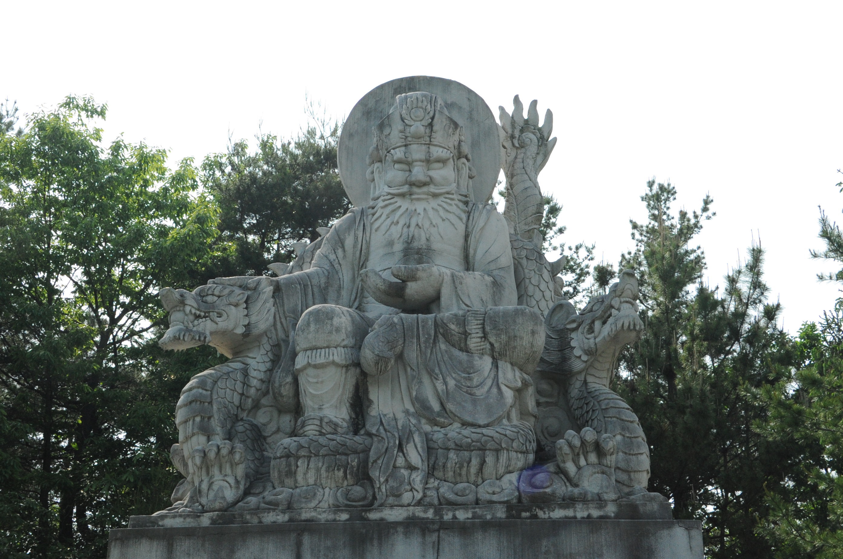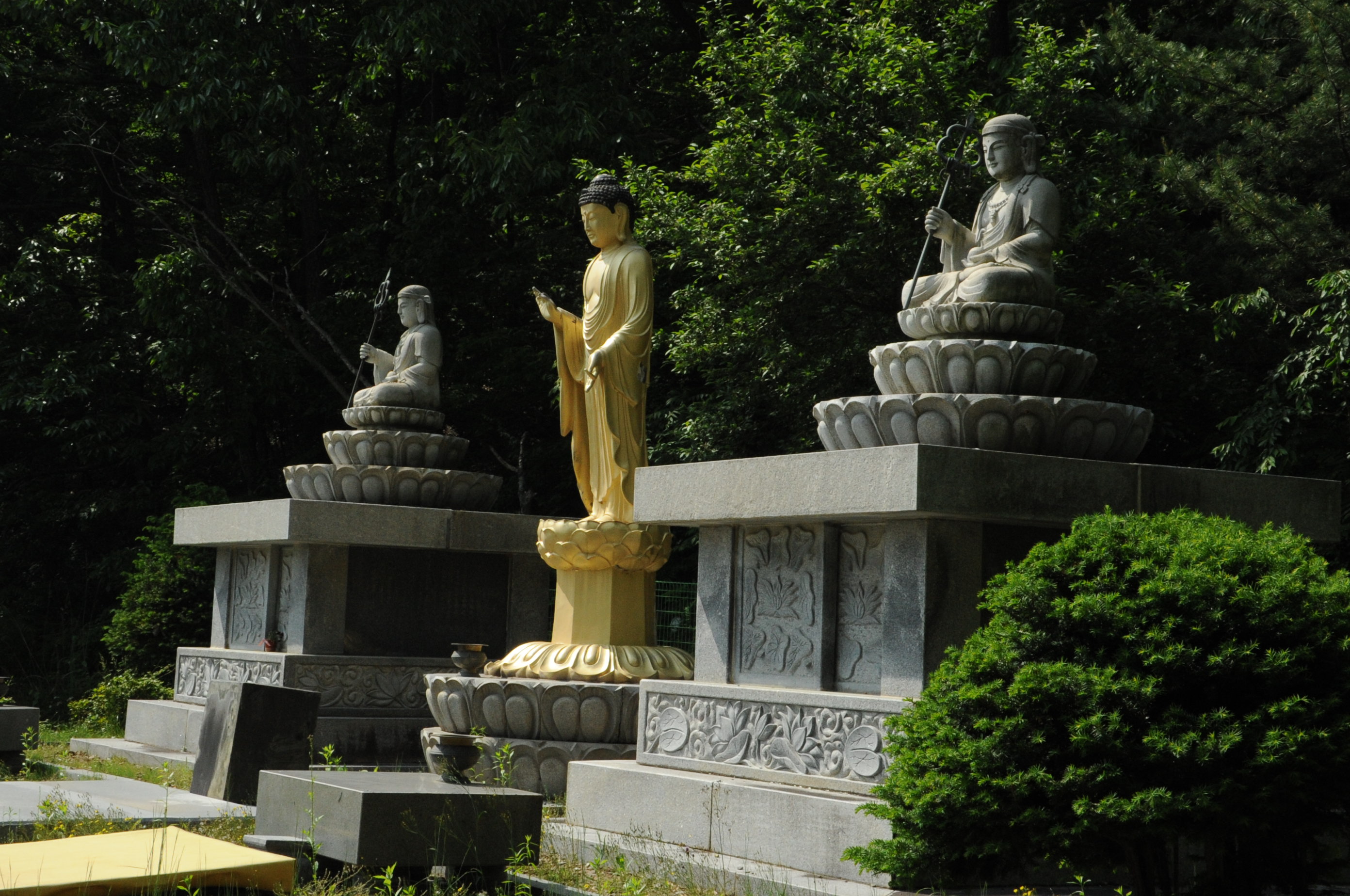 또 석가모니 부처님을 둘러싸고 반원형으로는 부처님의 상수 10대 제자상이 모셔져 있으며, 그 뒤로는 동판에 새긴 금강경이 병풍처럼 둘러져 있다.