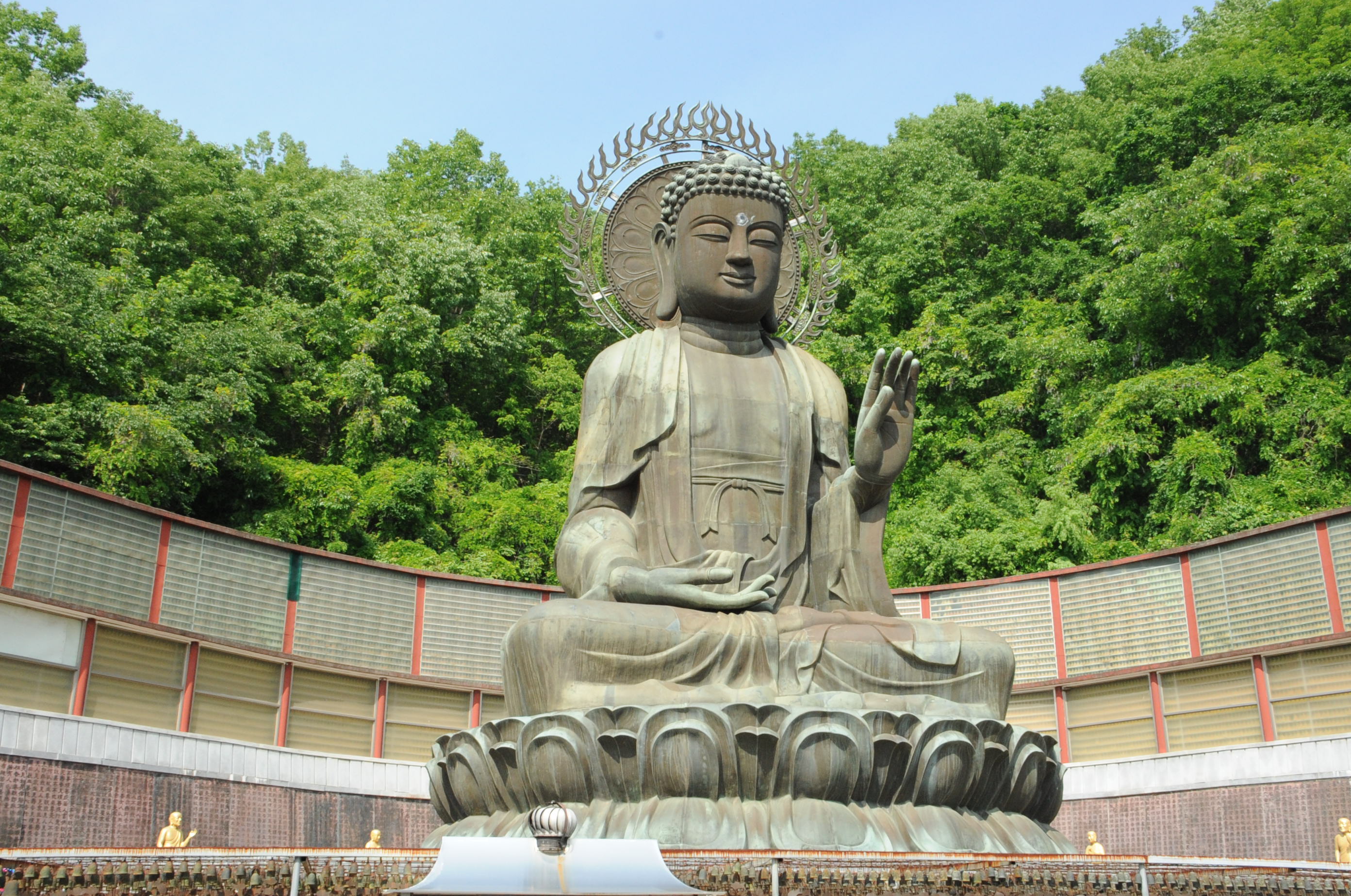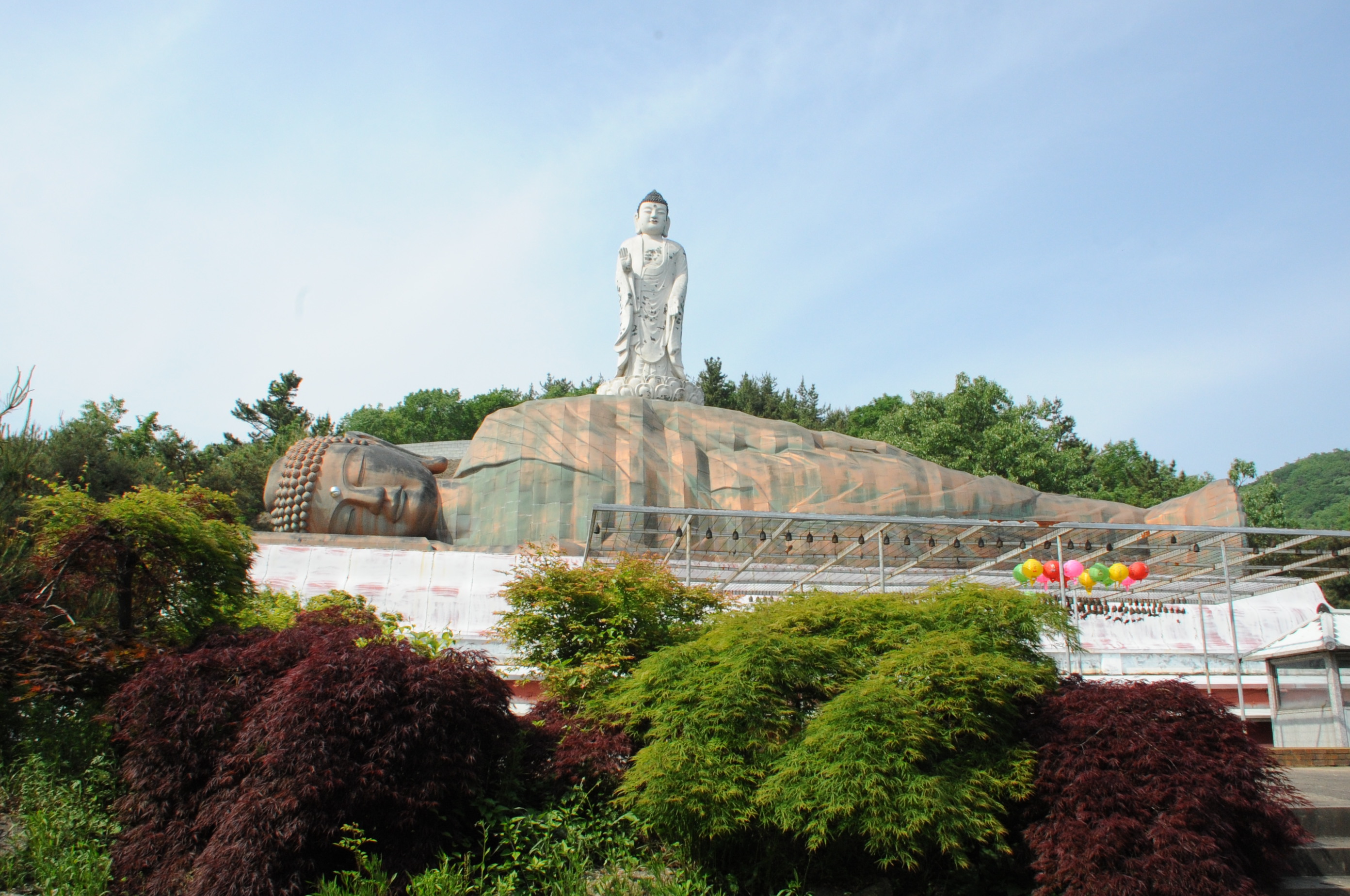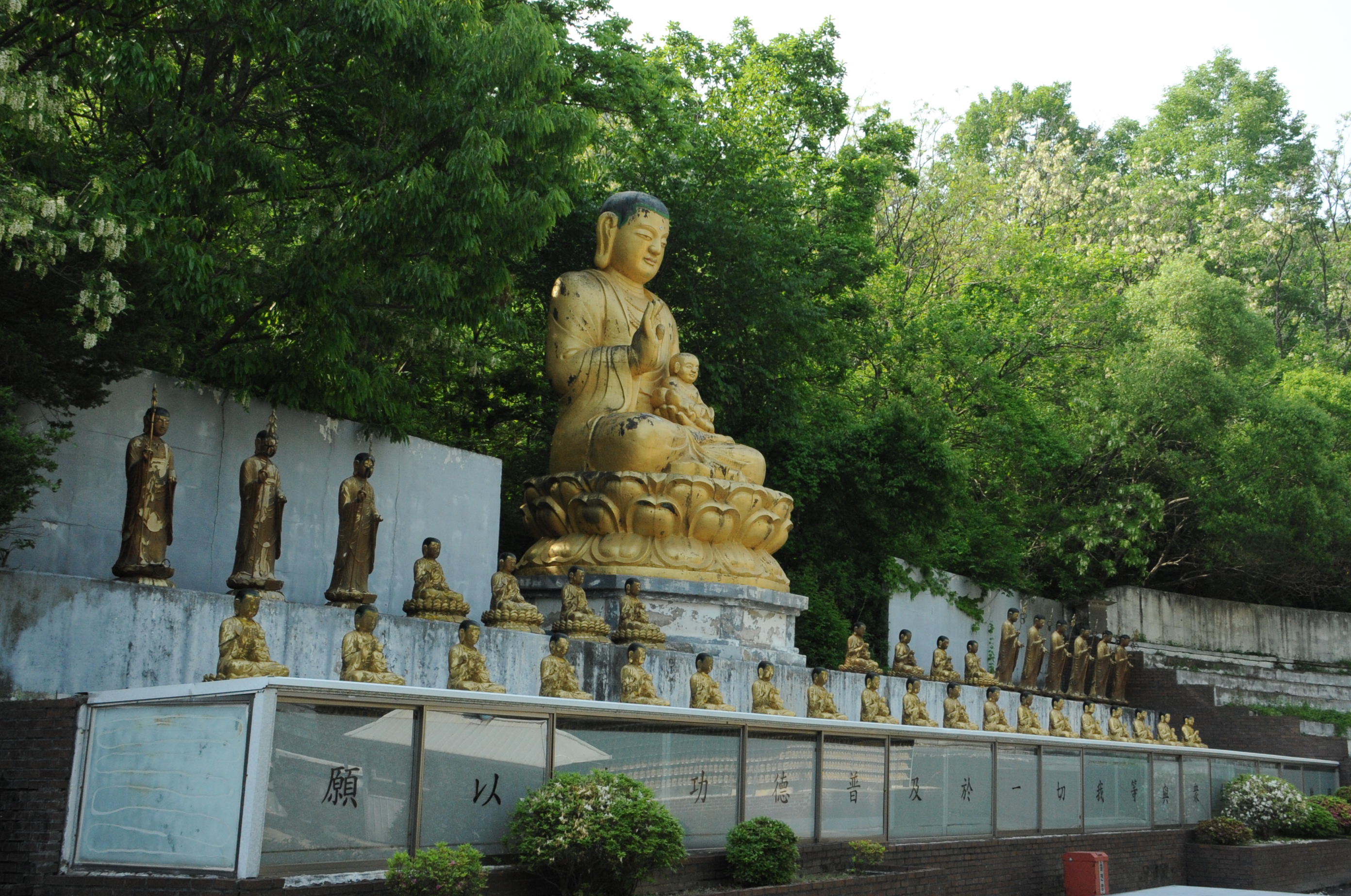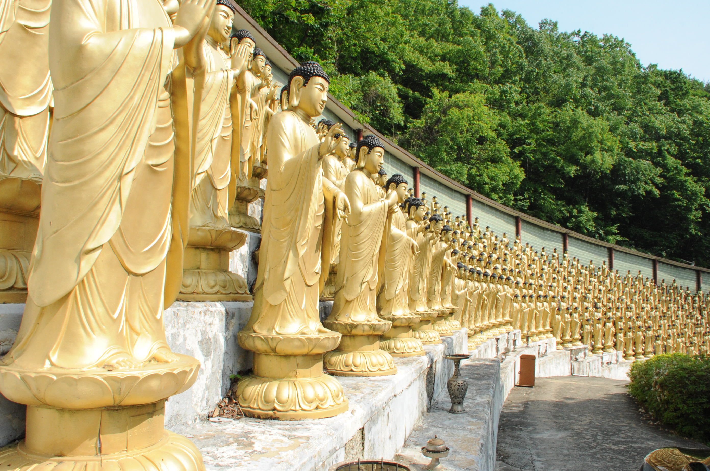 또한, 전체길이 210m에 이르는 말굽 모양의 계단 10개에는 1,000 불상이 있는데 이 불상들도 높이가 1.9m로 높다. 그뒤로는 개인의 소원을 담는 원불로 야광여래 333,333 불상이 있는데, 이는 석가가 이세상의 중생을 직접 교화할 때 영취산에서 1,250여 명의 비구승을 모아놓고 대승의 참진리인 《묘법연화경》을 설법하던 모습을 그대로 재현한 것이다.