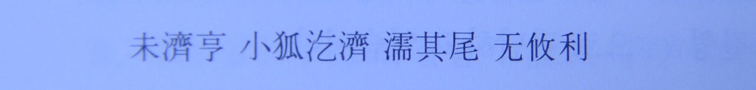 미제괘는 형통하다. 어린 여우가 강을 거의 다 건넜을 즈음 그 꼬리를 적신다. 이로울 바가 없다.
