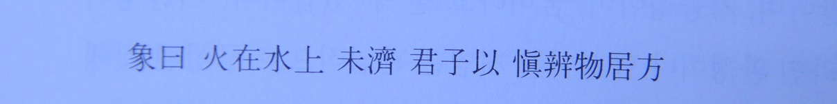 불이 물위에 있는 형상이다. 다 타지 못한다. 군자는 이 괘를 보고 사물을 신중하게 분별하고 그 거처할 곳을 정해야 한다.