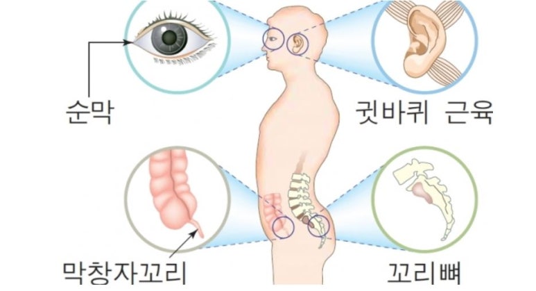 흔적(痕跡)이란 어떤 현상, 실체가 이미 없어졌거나 지나간 뒤에 남은 자국(Vestige)이나 자취(Trace)를 말한다. 내 몸에도 꼬리뼈(Coccyx)가 있다. 먼 선조에게는 꼬리가 달려 중요한 기능을 했을지 모른다. 나는 귀를 움직일 수 있다. 예전에는 모두 귀를 부지런히 움직여야 (이각근) 했는지 모른다. 맹장 끝의 충수에 대해서는 가끔 의문이 들기도 했었다. 창자 끝에 5-6Cm의 조그만 벌레 같은 충수가 오래전에는 토끼 같이 사람도 초식동물이었나 궁금했다. 있어도 없어도 그만인데 기능과 역할이 거의 없다니 그냥 무관심하게 지금까지 잊고 산다.