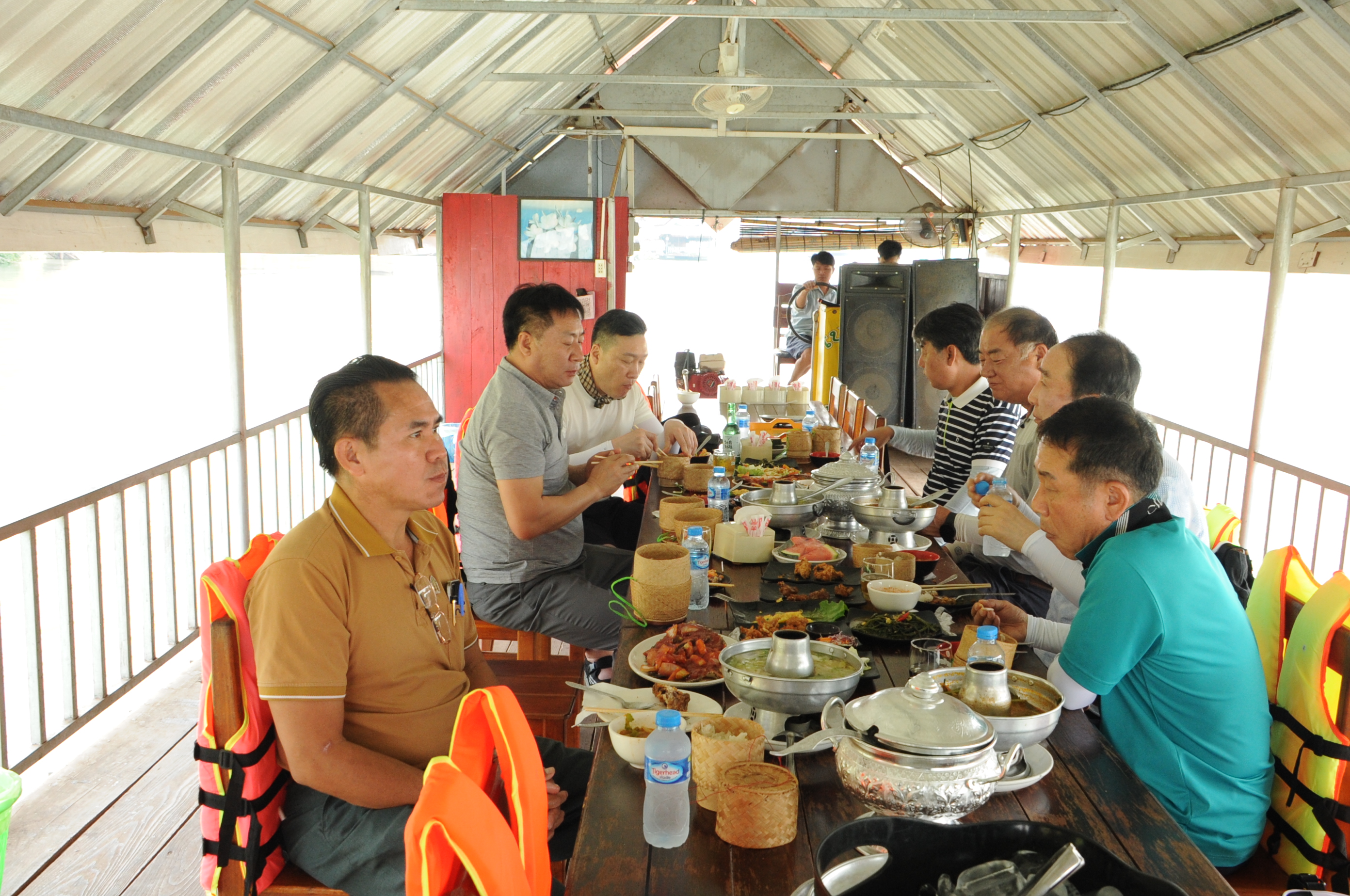 오늘은 골프팀과 함께 메콩강 지류에서 유람선을 타고 식사를 했습니다.