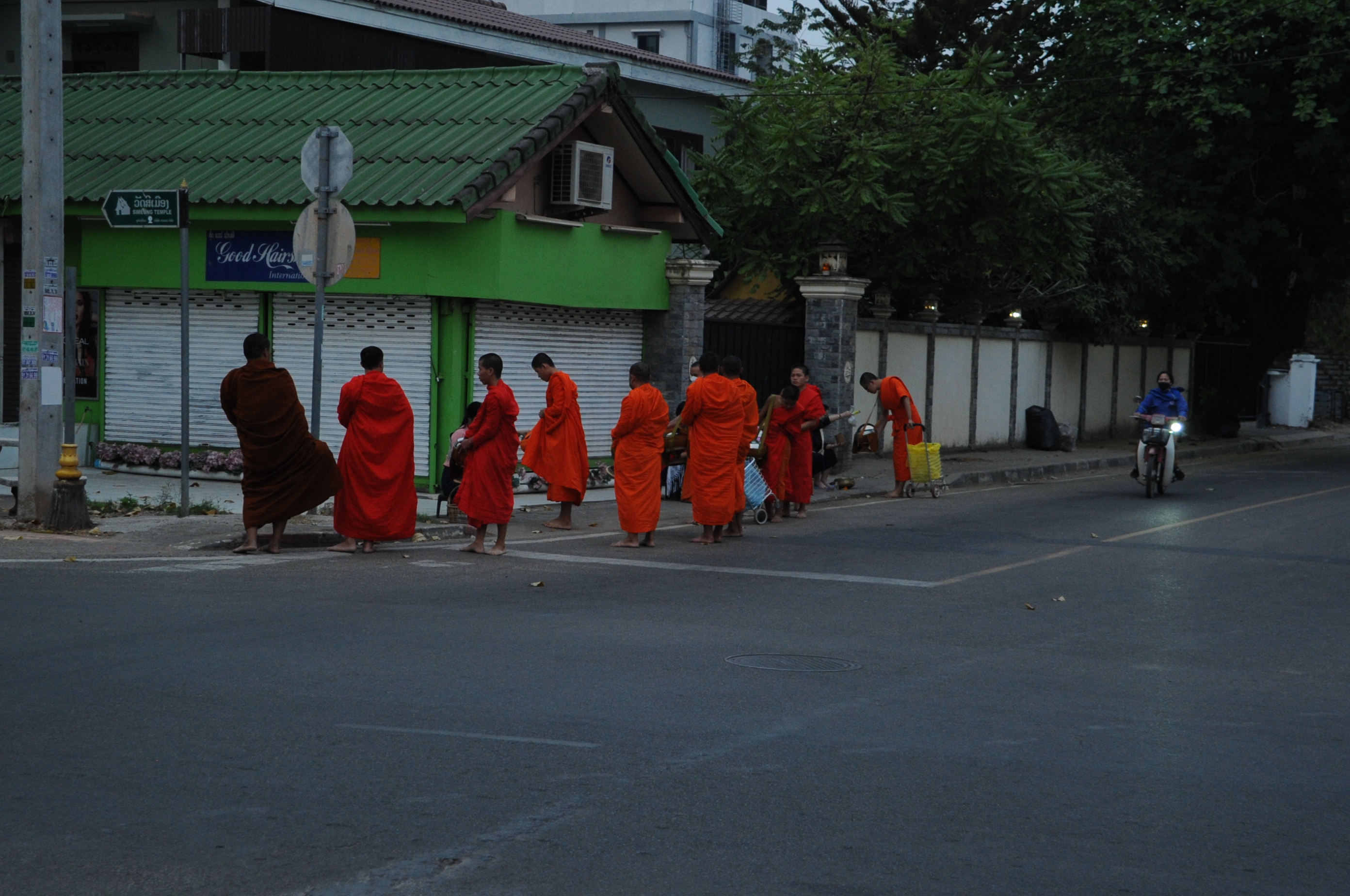 새벽길에 산책하며 탁발하는 스님과 주민들의 정성어린 음식들을 나누는 모습이 순수해 보였습니다.